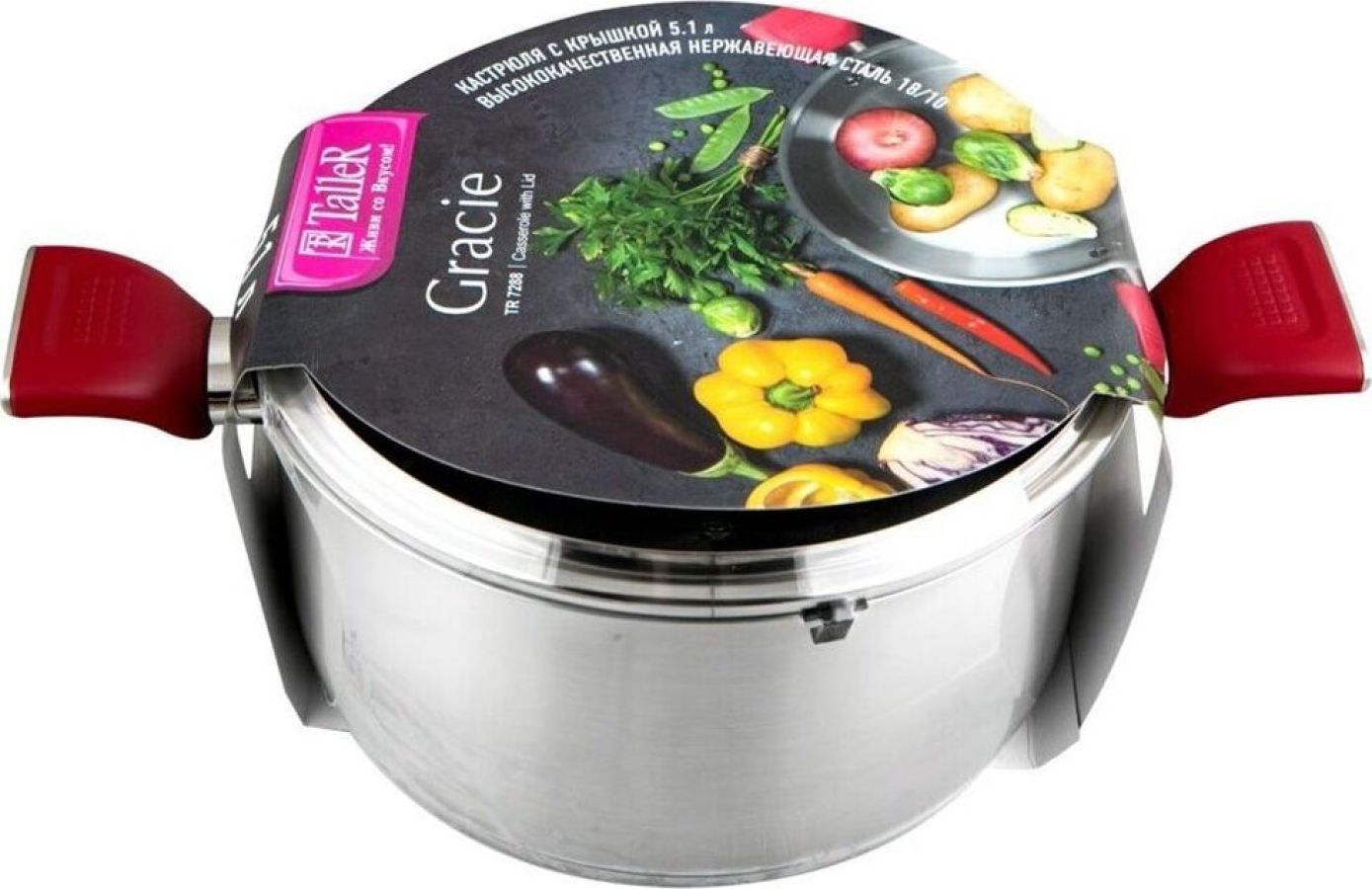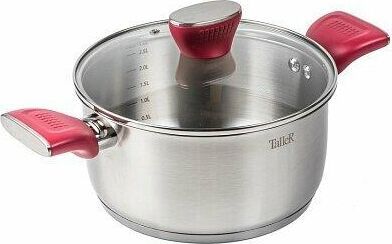 Кастрюля "Грейси" с крышкой 20 см, 3,0 л Толщина стенки — 0,5 мм. Толщина дна 4.0 мм. Крышка из жаропрочного стекла со стальным ободом и отверстием для выхода пара. Бакелитовые ручки. Есть отметки литража. Рекомендации: нельзя использовать в духовом шкафу