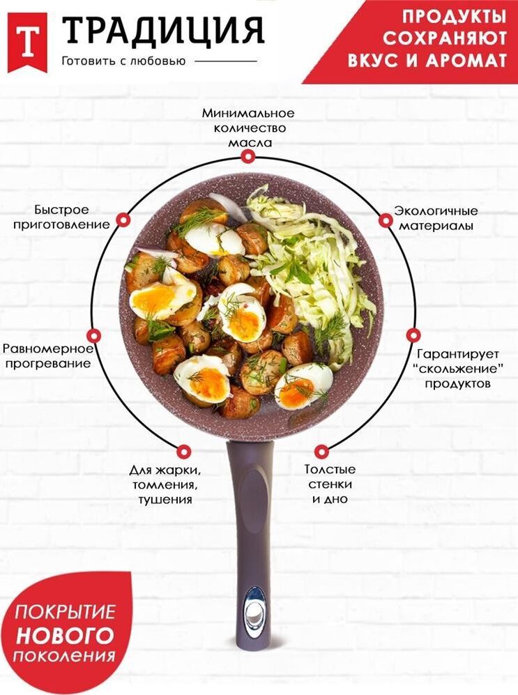 Комплектация: сковорода - 1шт , Антипригарное покрытие: минеральное