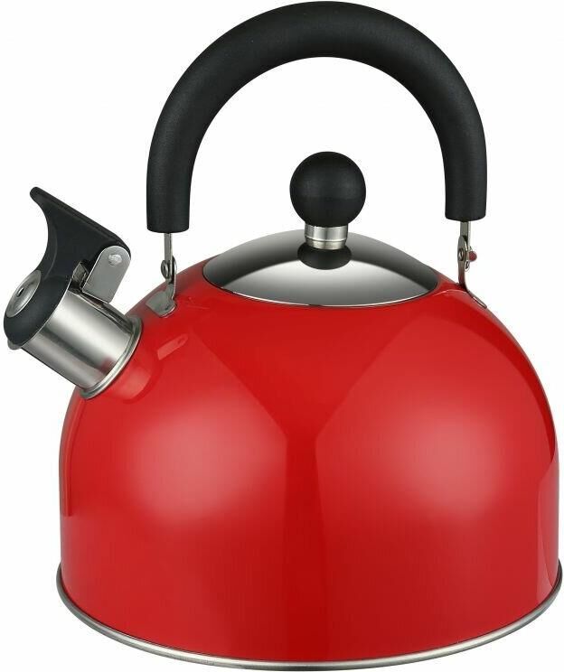 Чайник изготовлен из высококачественной нержавеющей стали с матовой полировкой. Носик чайника оснащен насадкой-свистком. Большая крышка для удобного наполнения и ухода. Не нагревающиеся бакелитовые ручки чайника, крышки и свистка безопасны и комфортны в использовании. Капсульное дно обеспечивает равномерное нагревание. Подходит для всех типов плит.