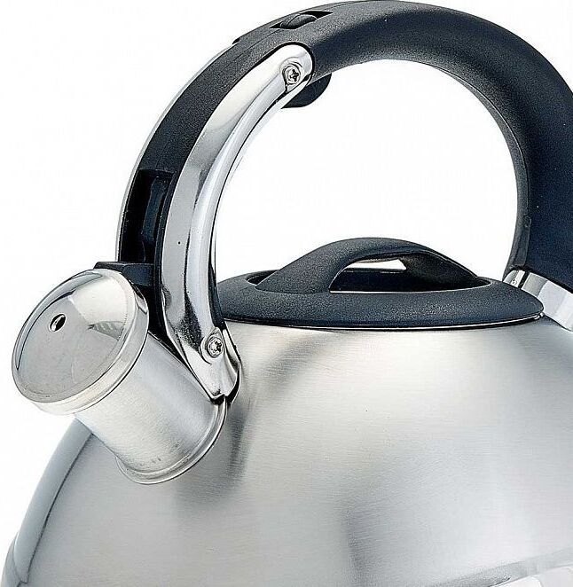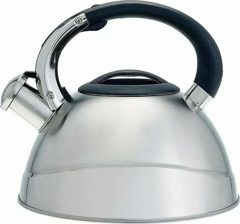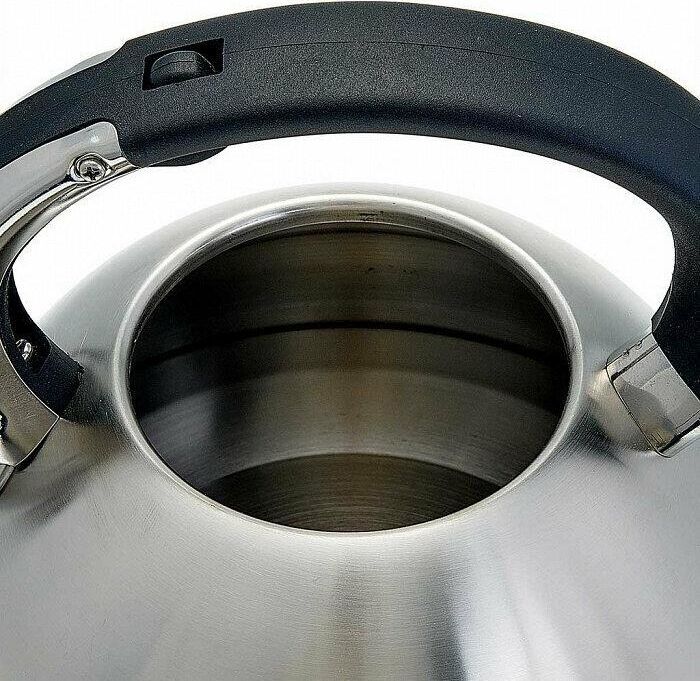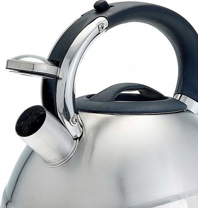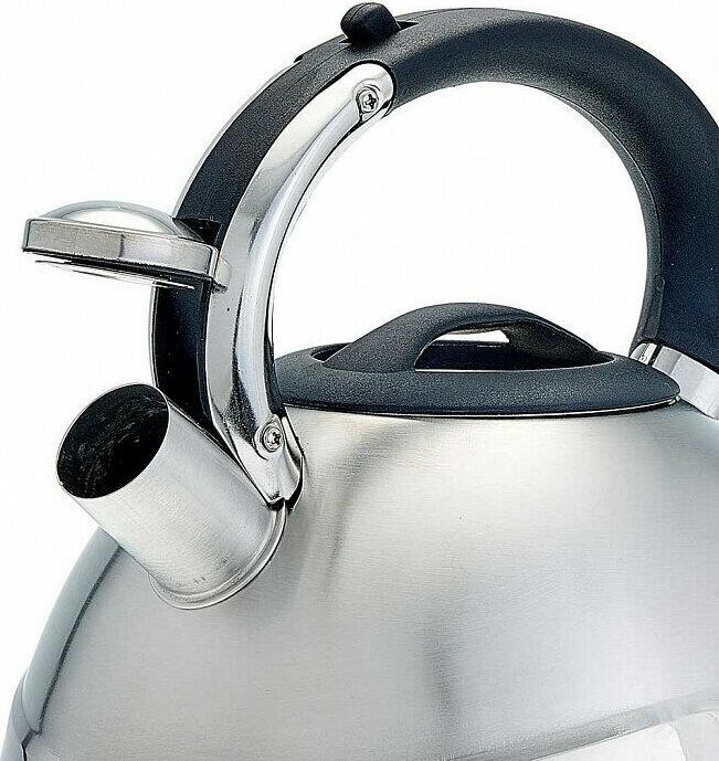 ALPENKOK AK-531 Объем 3 л. Толщина стали 0,4 мм. Чайник из нержавеющей стали со свистком. Высококачественная нержавеющая сталь. Матовая полировка. Индукционное дно. Термостойкая бакелитовая ручка с кнопкой для открывания носика. Цвет ручки и крышки: черный. Пригоден для использования на всех типах кухонных плит, включая индукционные.