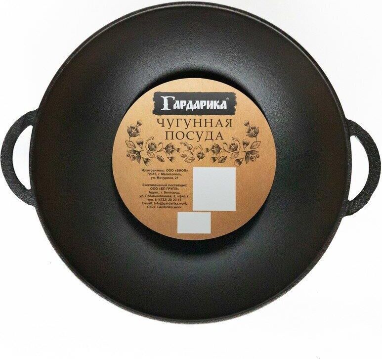 с двумя ручками. Объем, л./размер, см: 26см Материал: чугун Толщина дна: 4 Толщина стенок: 3.5 Источник тепла: Все виды плит Внутреннее покрытие: чугун Внешнее покрытие: чугун