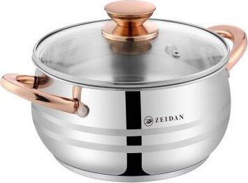 Кастрюля ZEIDAN Z-501071 6,1 л с крышкой, Кастрюля со стеклянной крышкой - 6,1 Л (Ø24 см), нержавеющая сталь, 3-x СЛОЙНОЕ КАПСУЛИРОВАННОЕ ИНДУКЦИОННОЕ ДНО, крышка - стекло, ручки на корпусе и крышке "ПОД ЗОЛОТО", комбинированная полировка снаружи, матовая полировка внутри. Подарочная упаковка.