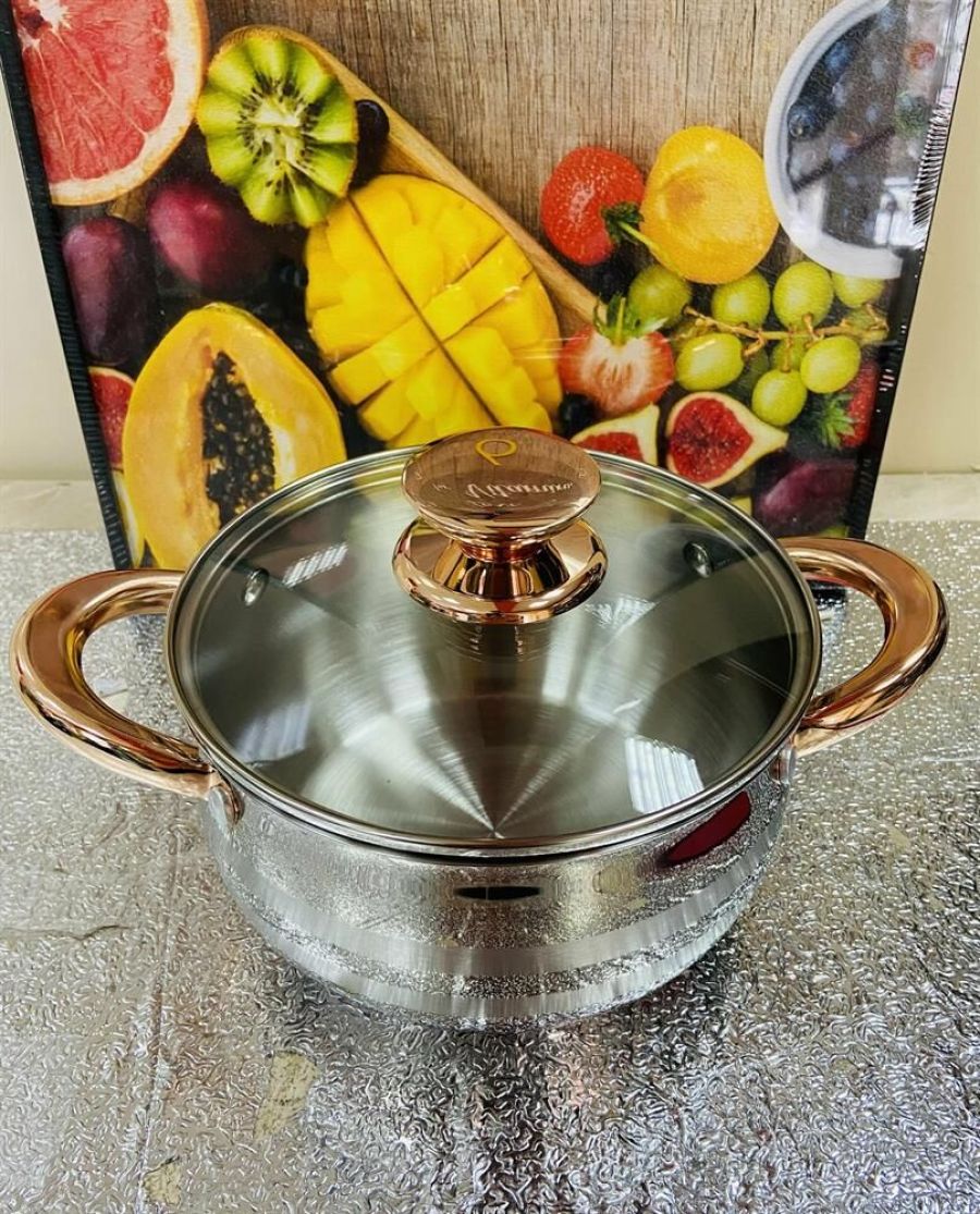 Кастрюля ZEIDAN Z-501069 2,7 л с крышкой, Кастрюля со стеклянной крышкой - 2,7 Л (Ø18 см), нержавеющая сталь, 3-x СЛОЙНОЕ КАПСУЛИРОВАННОЕ ИНДУКЦИОННОЕ ДНО, крышка - стекло, ручки на корпусе и крышке "ПОД ЗОЛОТО", комбинированная полировка снаружи, матовая полировка внутри. Подарочная упаковка.