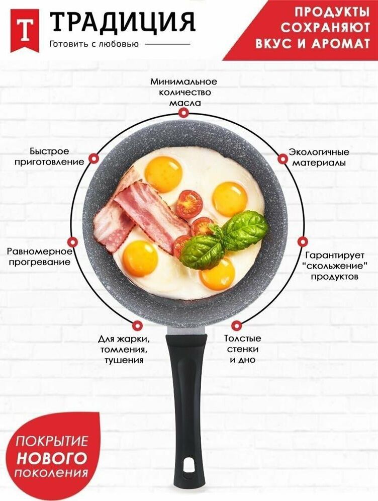 Комплектация: сковорода - 1шт , Антипригарное покрытие: тефлоновое