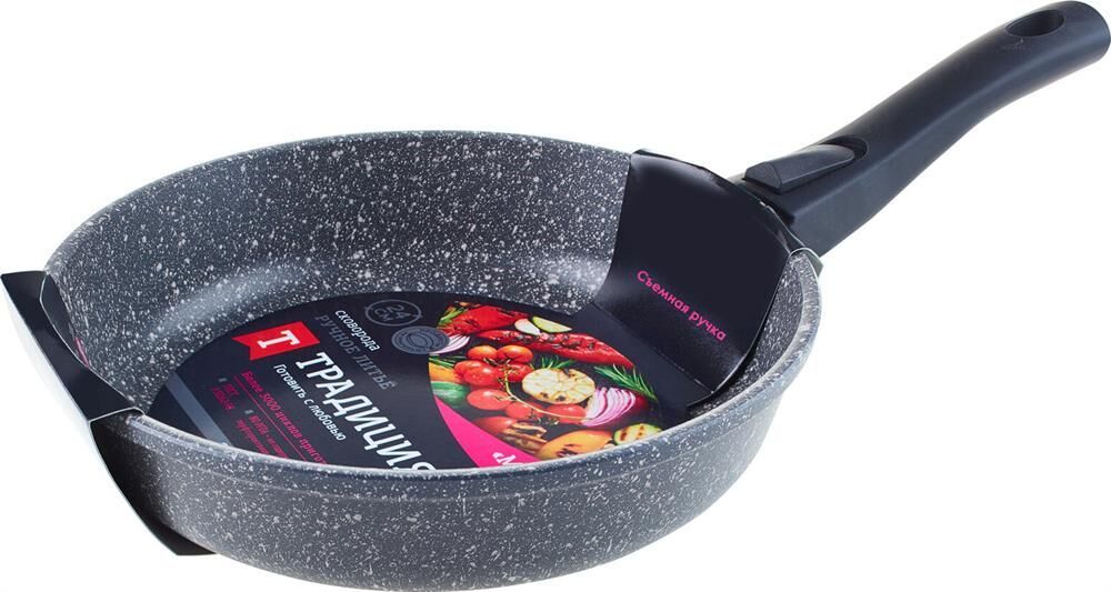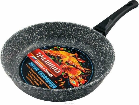 бъем, л./размер, см: 24 см Материал: литой алюминий Коллекция/серия: Мрамор Торговая марка: Традиция Толщина дна: 6 Толщина стенок: 4 Источник тепла: Все виды плит, кроме индукционной Тип упаковки: цветной рукав Внутреннее покрытие: антипригарное покрытие Pfluon Внешнее покрытие: антипригарное покрытие Pfluon