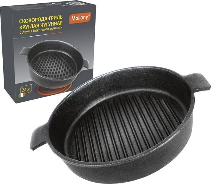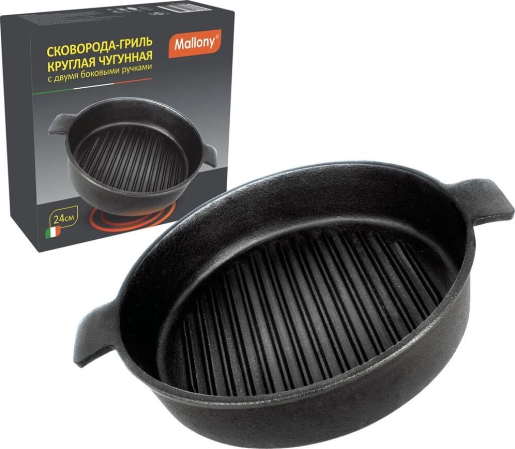 Комплектация: Сковорода-гриль MALLONY 24 см б/покр. чугун индукц. 2 руч.