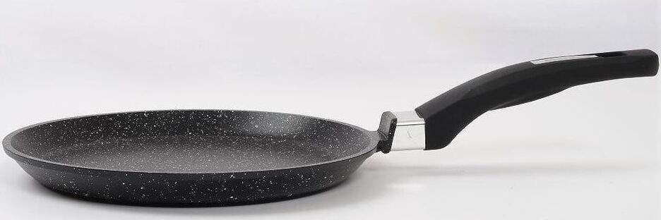 Сковорода блинная индукционная 24см с антипригарным покрытием и несъемной ручкой серии "Гранит black Induction Pro". Подходит для всех типов плит, можно использовать в посудомоечной машине.