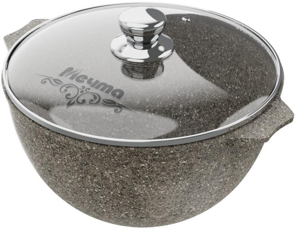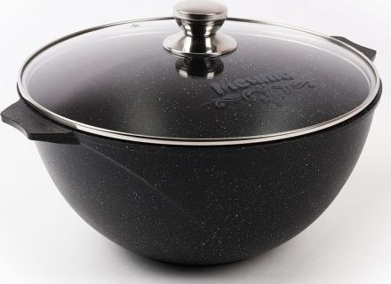 Казан для плова 5л с антипригарным покрытием и стеклянной крышкой серии "Premium" цвет mokko". Подходит для всех типов плит, кроме индукционных. Можно использовать в посудомоечной машине.