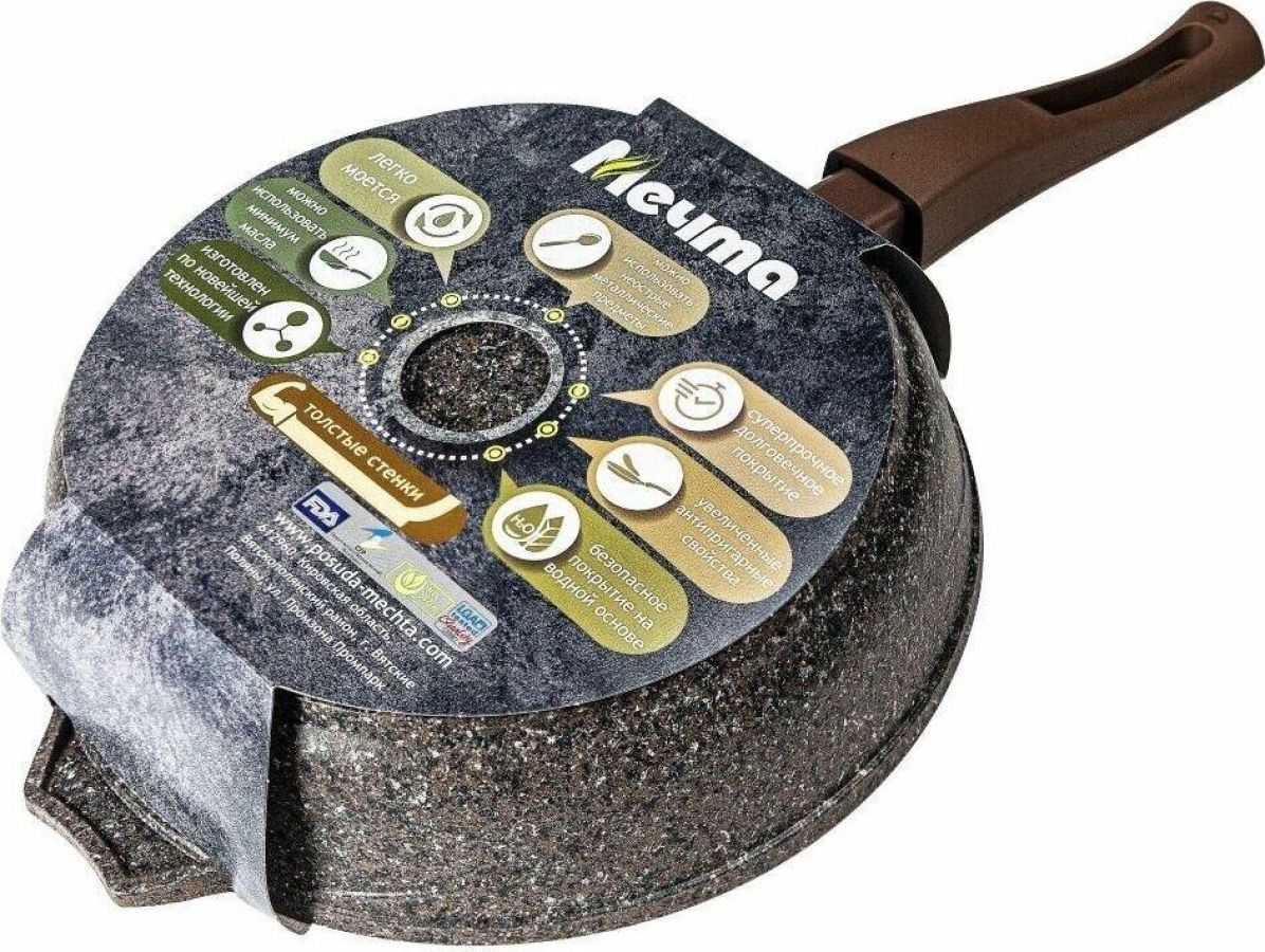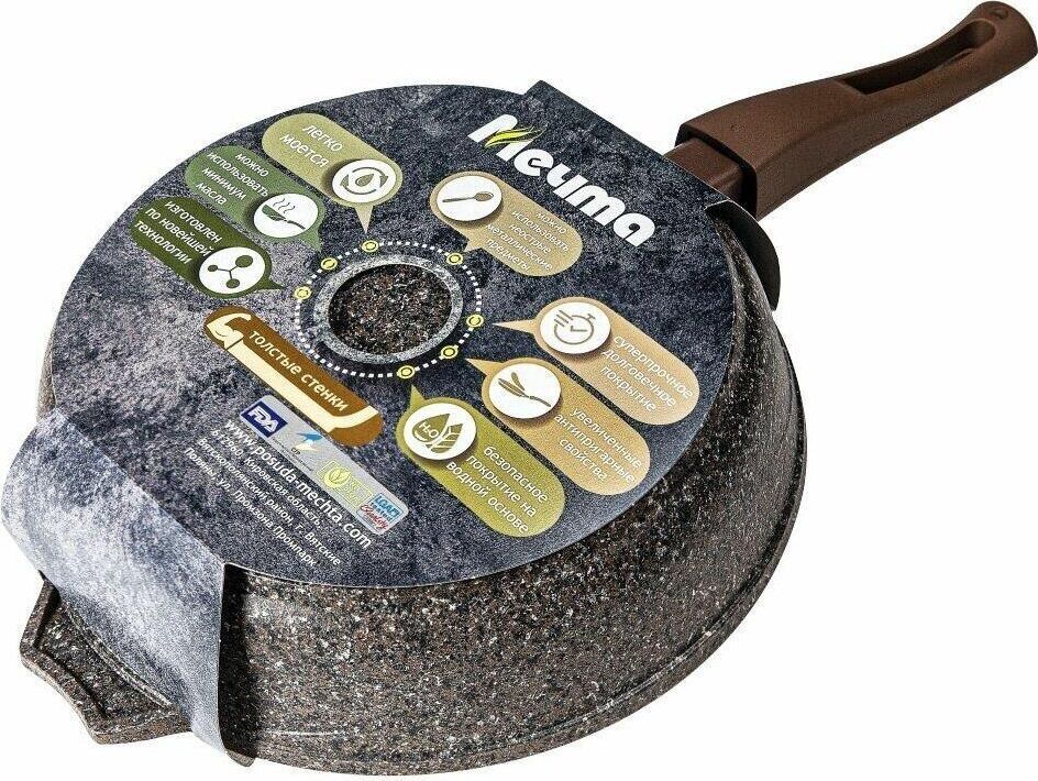 Сковорода 30см c антипригарным покрытием и съемной ручкой серии "Premium" цвет mokko. Подходит для всех типов плит, кроме индукционных. Можно использовать в посудомоечной машине.
