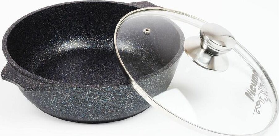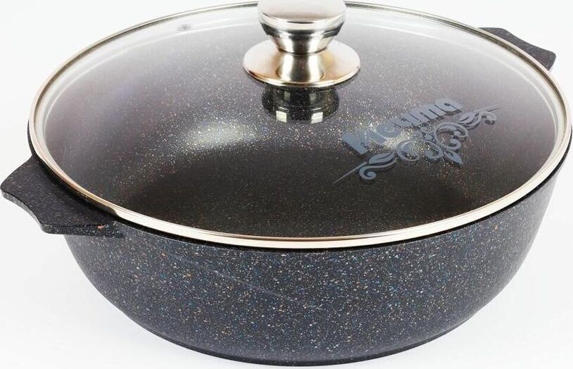 Жаровня 6л с антипригарным покрытием и стеклянной крышкой серии "Гранит star" Подходит для всех типов плит, кроме индукционных. Можно использовать в посудомоечной машине. Можно использовать в духовке отдельно без крышки.