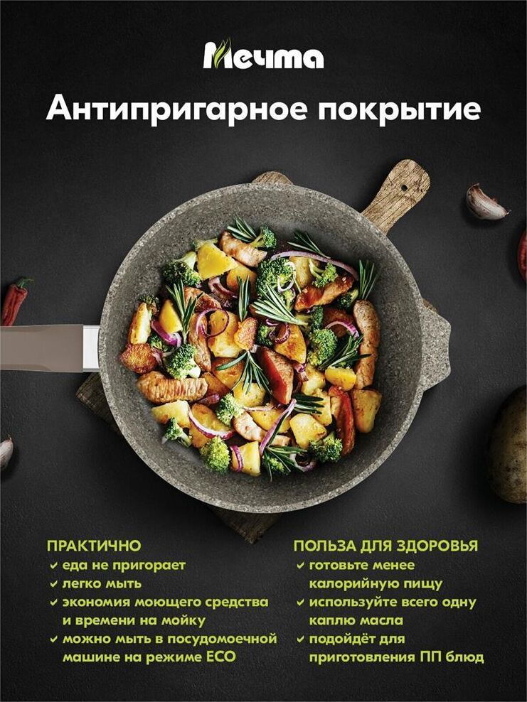 Комплектация: Сковорода-1шт Ручка-1шт Крышка-1шт , Антипригарное покрытие: PFLUON