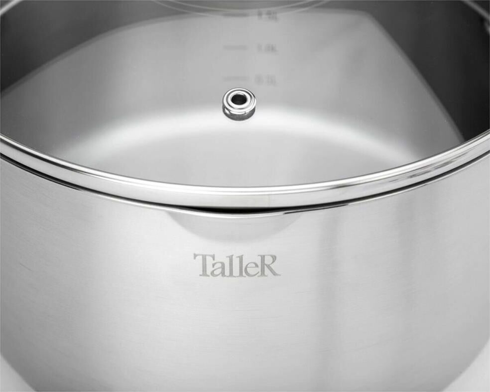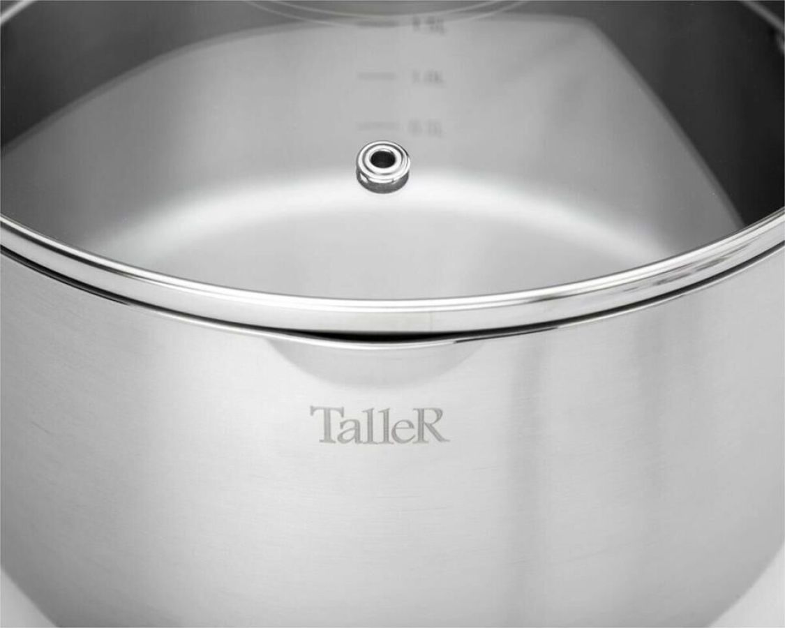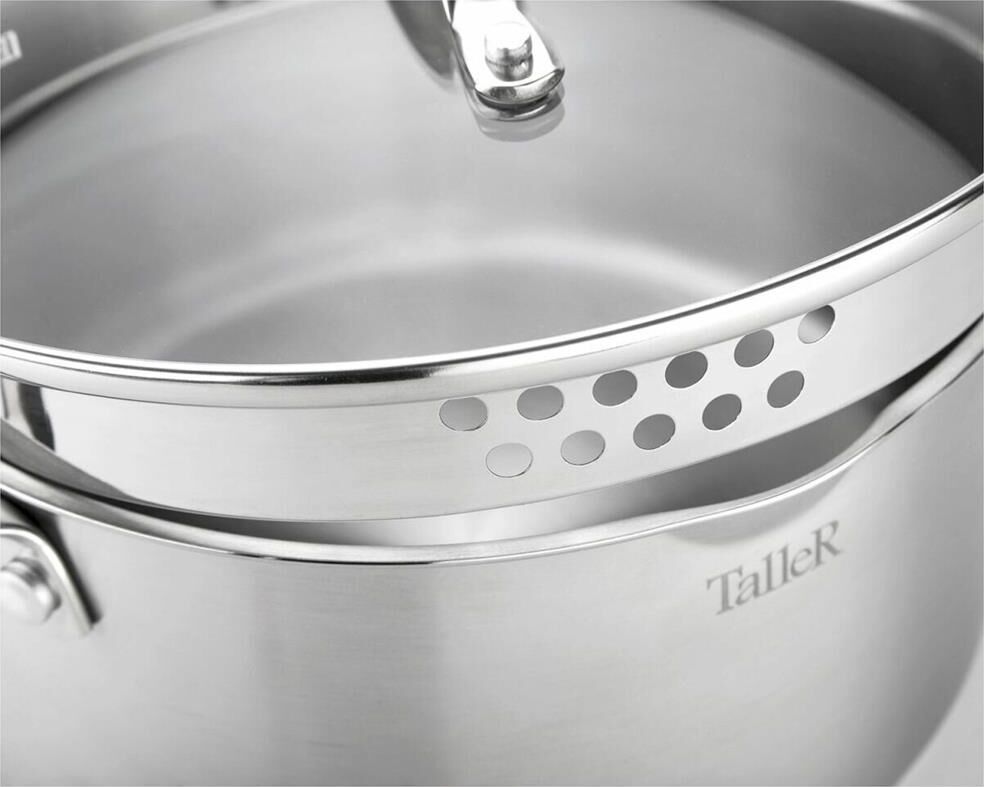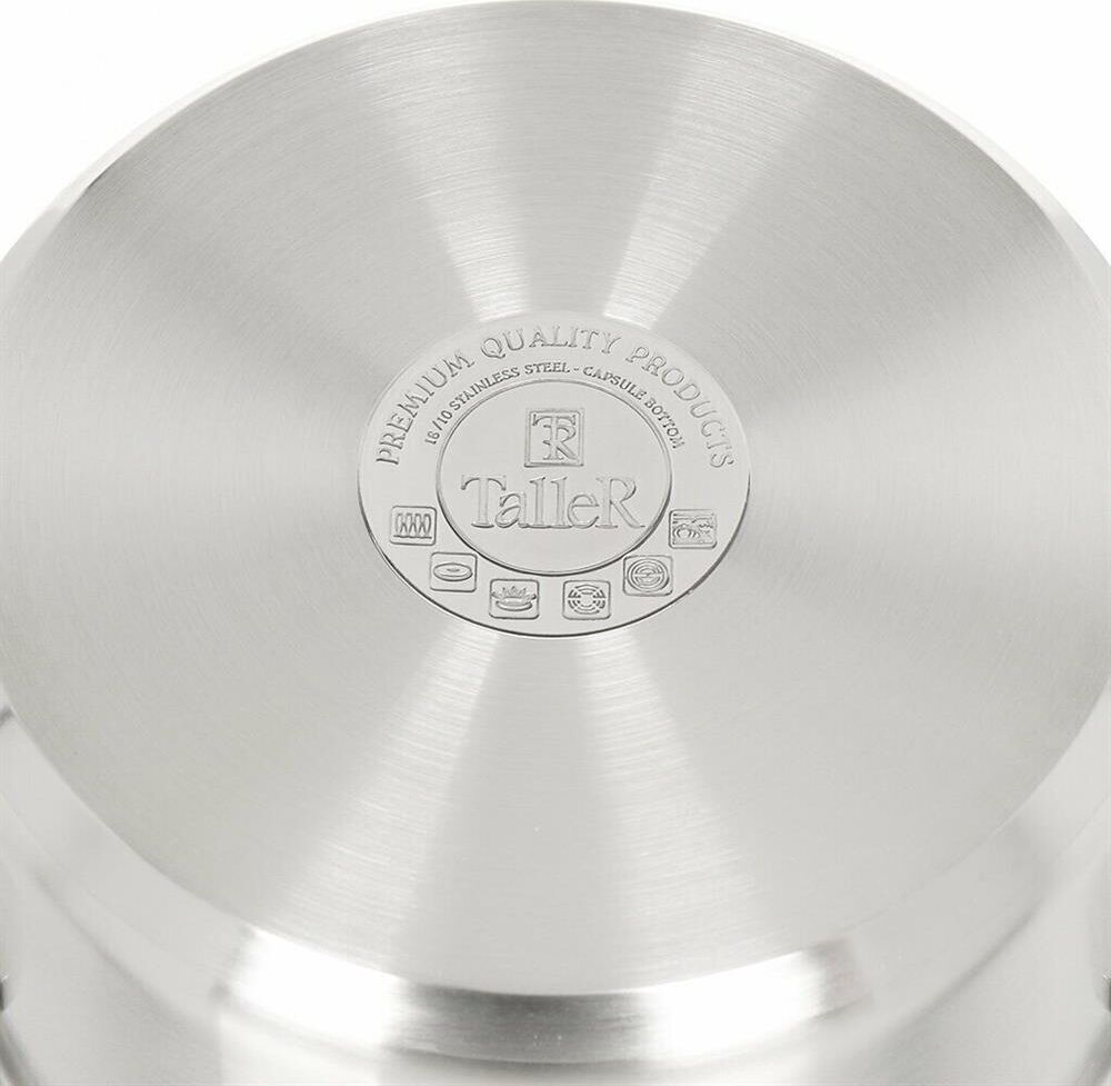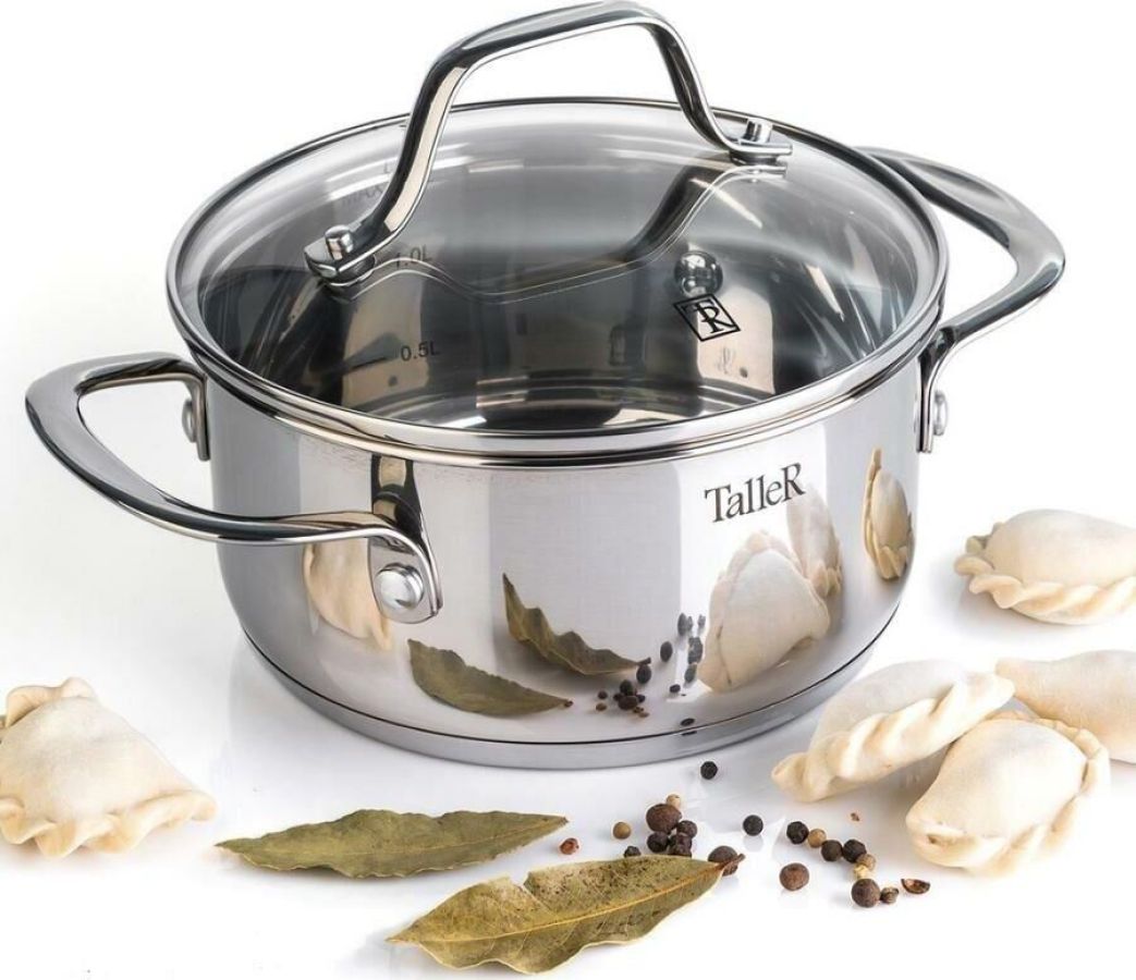 Сталь 18/10, толщина дна/стенки 4.0/0,6мм, сливной носик, крышка с перфорацией для удобного слива жидкости. Ручки из нержавеющей стали. Отметки емкости на внутренней стенке кастрюли, матовая внутренняя и внешняя полировка. Упаковка: цветная коробка. Разме