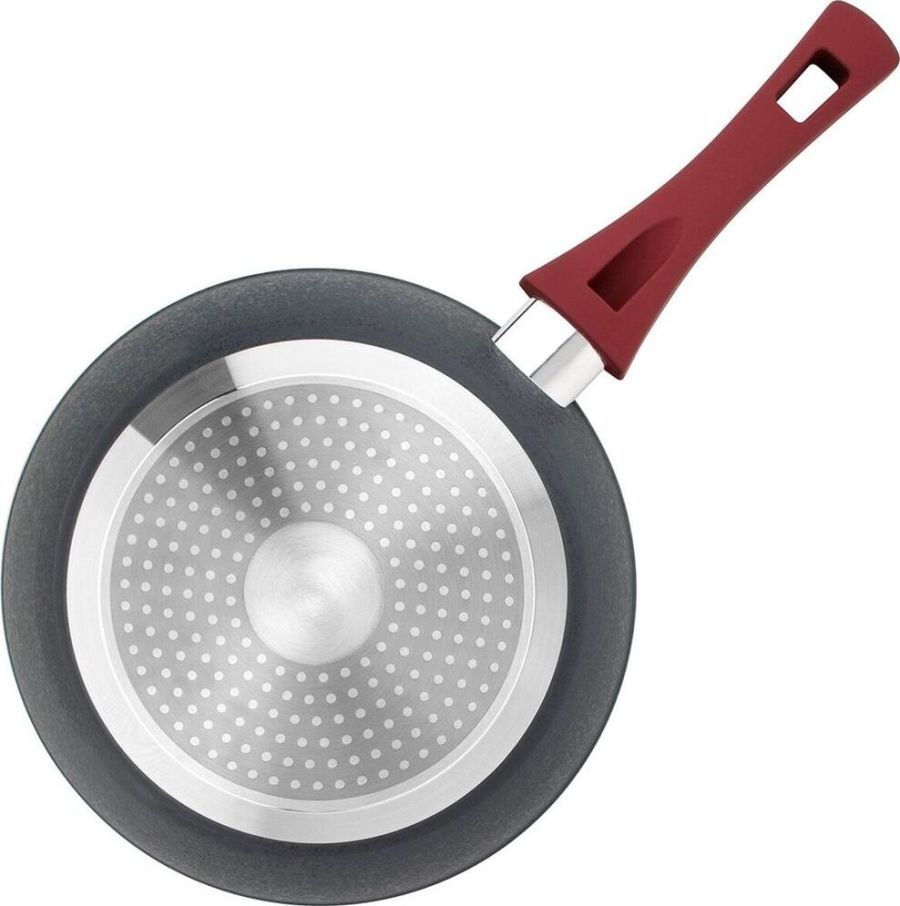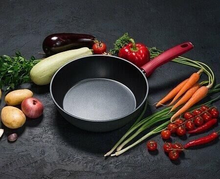 Сковорода "Грейси"из кованого алюминия с антипригарным покрытием Толщина дна 4,9 мм Бакелитовая ручка не нагревается при использовании конфорки или газовой горелки, не превышающей диаметр дна сковороды. Рекомендации: не подлежит эксплуатации в духово