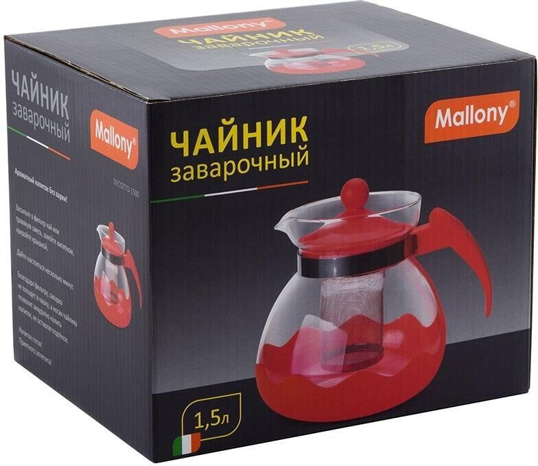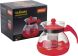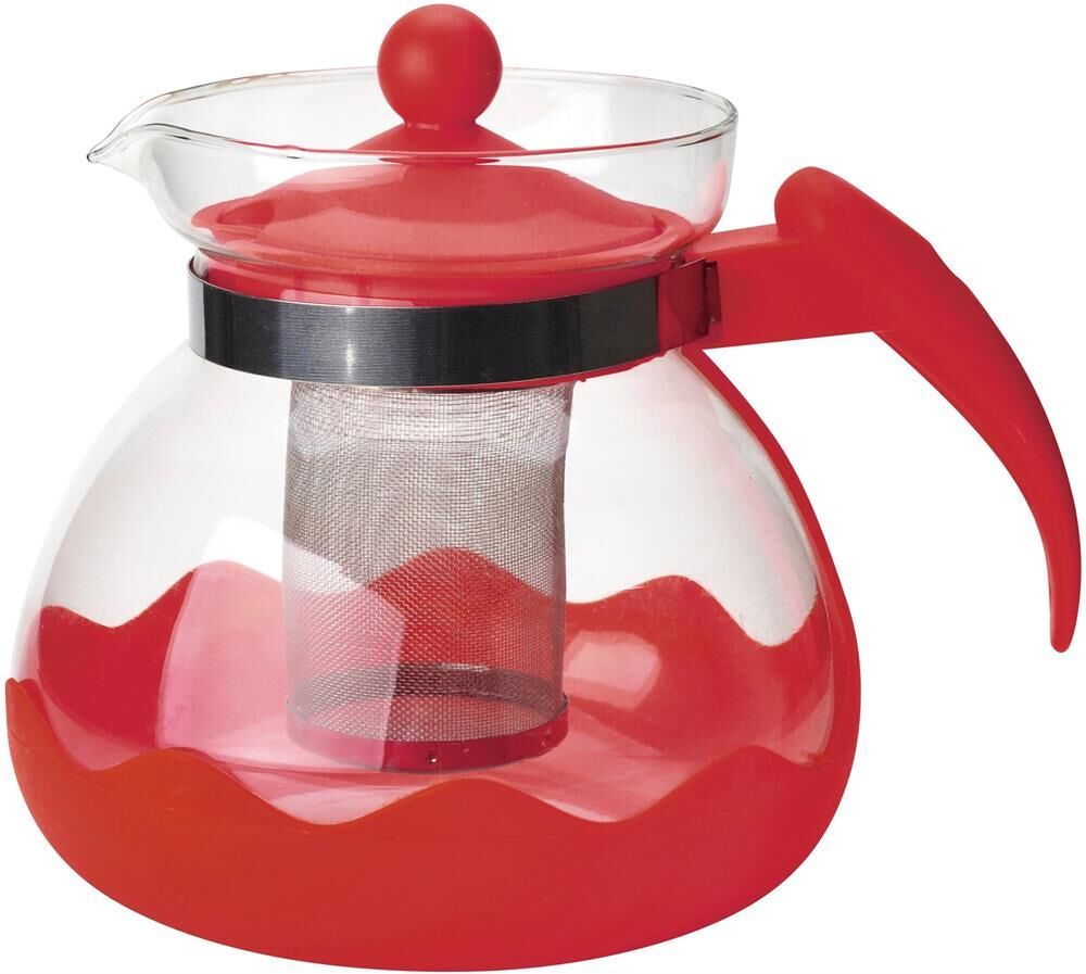 Чайник заварочный Корпус из жаропрочного стекла/крышка/ ручка из пластика Фильтр из нержавеющей стали Объем — 1500 мл Толщина стекла — 1 мм Цвет — красный 4~11.5×10-6 — коэффициент линейного расширения Упаковка — пузырчатая пленка/цветная коробка