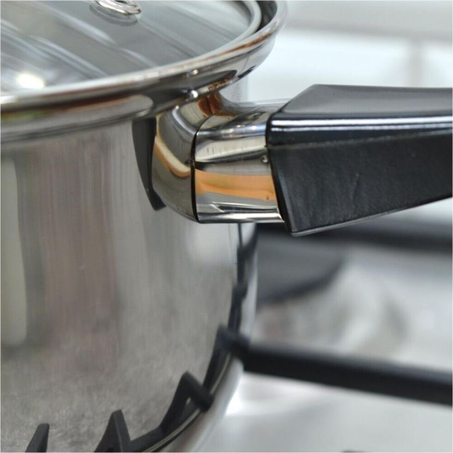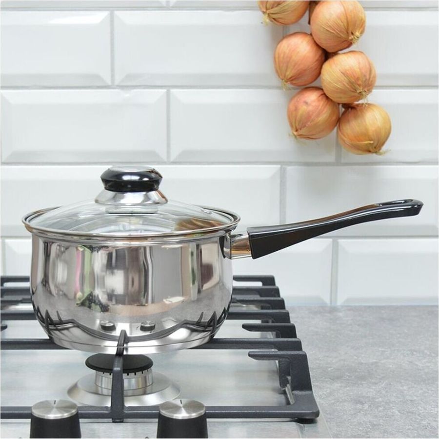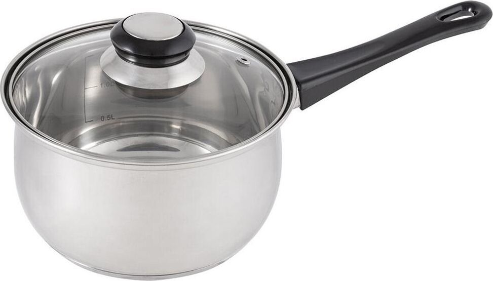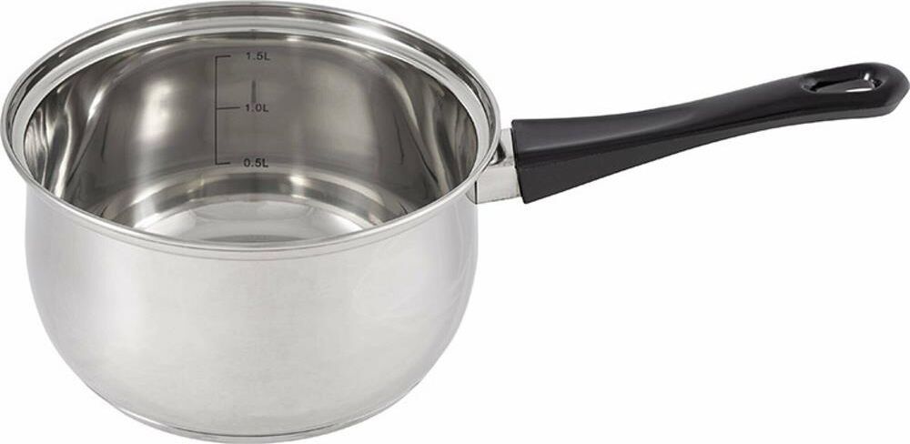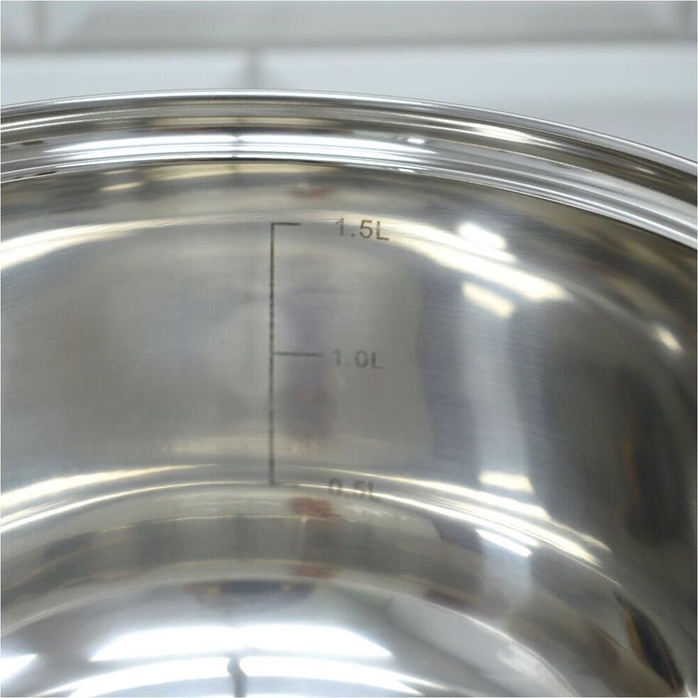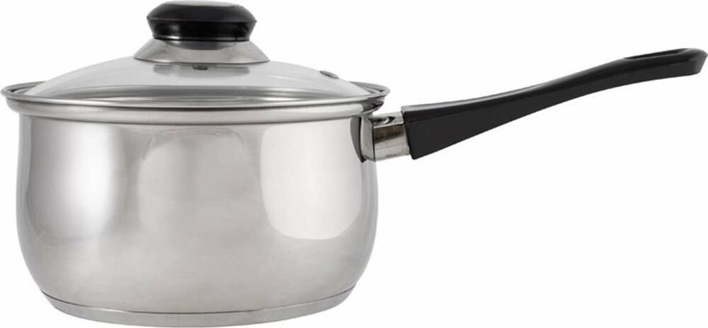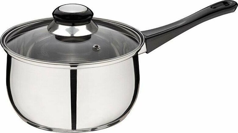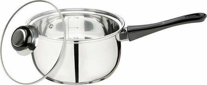 Ковш из нерж стали, объем 1,9 л, с бакелитовой ручкой и крышкой из жаропрочного стекла Материал: нерж сталь 201, бакелит, алюминий, 430 сталь, жаропрочное стекло. Толщина 201 стали 0,35 мм. Ручка на крышке бакелитовая с вставкой из нерж стали, боковая ручка — бакелитовая, зеркальная полировка корпуса внутри и снаружи. Отметки литража. Подходит для всех типов плит (дно 3 слойное: 201 сталь+1 мм алюминий+430 сталь (база для индукции)). Объем 1,9 л. Размер: 16*9,5 см. Упаковка: стикер+термоусадочная пленка. Диаметр дна: 13,5 см Диаметр крышки: 16,5 см