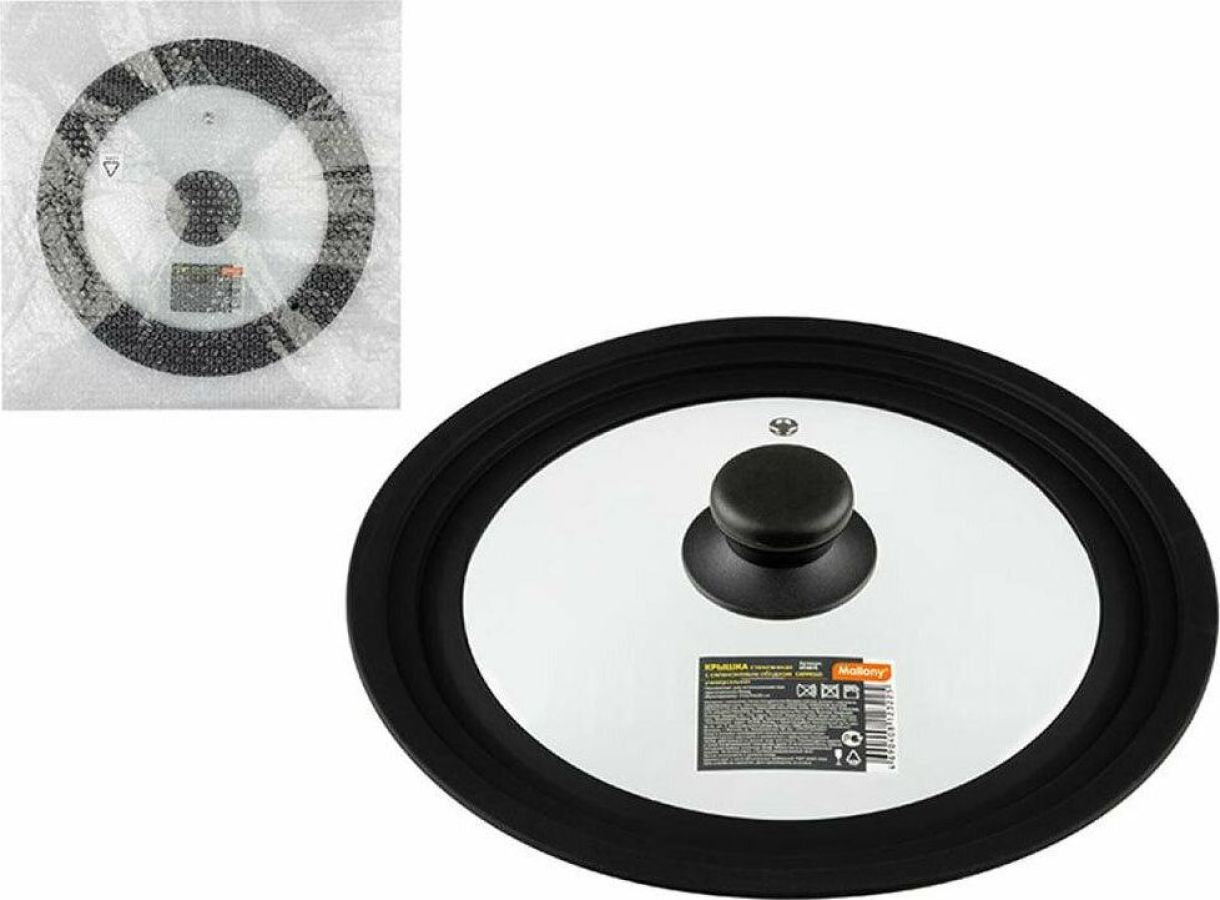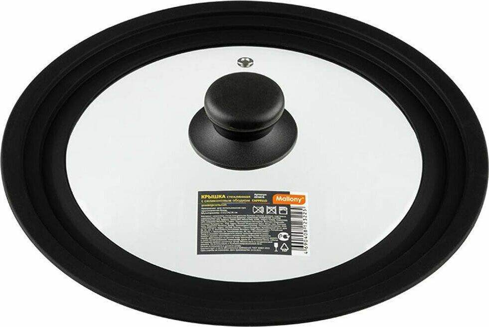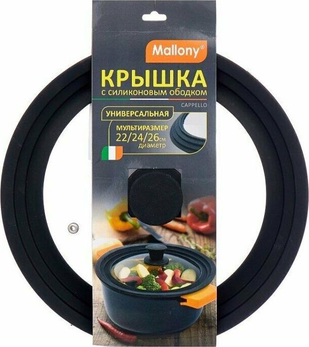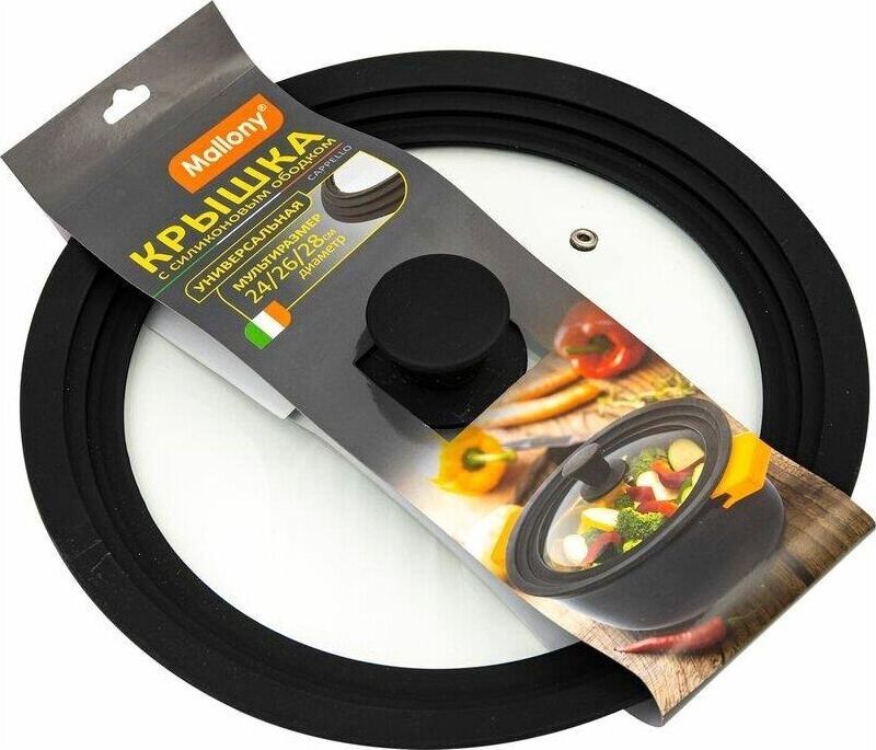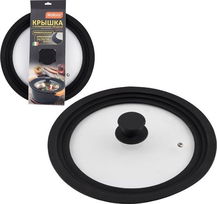Крышка универсальныая CAPPELLO мультиразмер: 24/26/28см, материалы — закаленное стекло, силикон, нерж сталь толщина стекла — 4 мм; крепеж из 304 нерж стали Упаковка — цветной рукав + пузырчатая пленка Можно мыть в посудомоечной машине. Можно использовать в духовом шкафу. Крышка универсальная подходит для посуды разного диаметра 24/26/28 см, имеет отверстие для выхода пара и силиконовый ободок, который предохраняет крышку от механических повреждений. В комплект входит силиконовая ручка с набором крепежа.