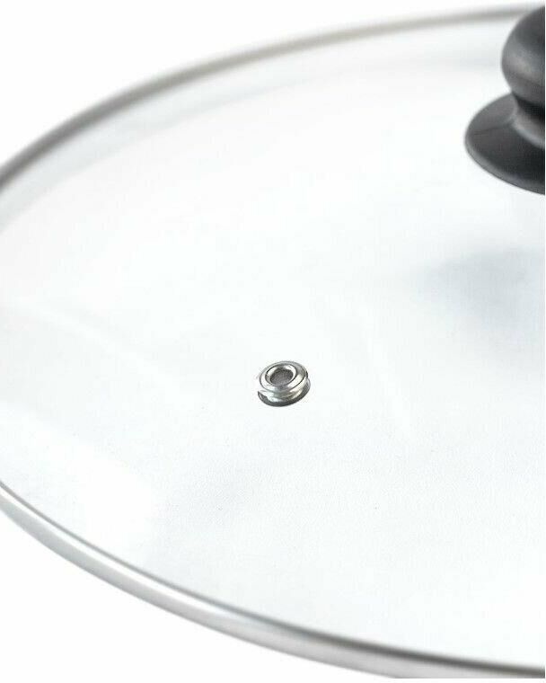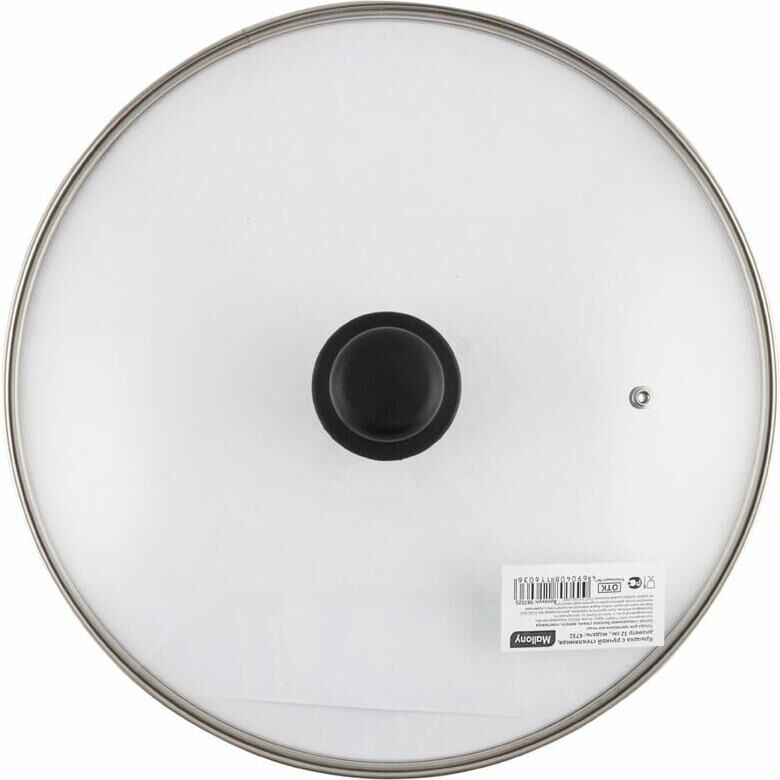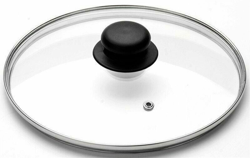 Материал: термостойкое стекло 4 мм, марка М1-М4; нержавеющая сталь AISI 201; термостойкий пластик; Размер: диаметр 32см., высота 6,5см; Индивидуальная упаковка: стикер; Можно мыть в посудомоечной машине. Изготовлено по ГОСТ Р51969-2002. Специальная термическая обработка стекла делает его ударопрочным и более устойчивым к изменениям температур, а метод штамповки обеспечивает большую легкость и прозрачность штампованных крышек по сравнению с литыми.