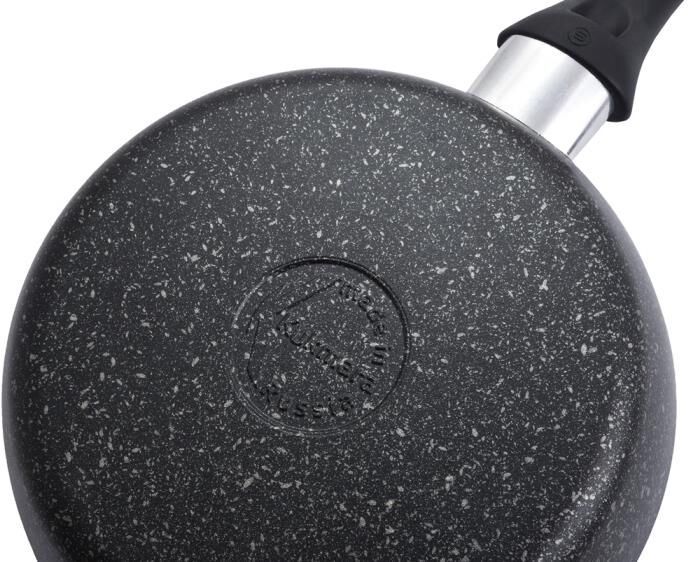 Сковорода а/пр литая 18см Темный мрамор. Подходит для частого применения, идеальна для жарки и тушения при возможности использования минимального количества масла или совсем без него. Можно готовить на любой плите, кроме индукционной. Сковорода имеет отличные теплораспределительные и теплоаккумулирующие свойства, и блюда в ней получаются сочными и ароматными. Мраморное, сверхпрочное, антипригарное покрытие с твердыми частицами натурального мрамора нового поколения на водной основе разработано специально для интенсивного использования на каждый день. Антипригарное покрытие надолго сохраняет первозданную привлекательность посуды, а превосходные антипригарные свойства будут радовать на протяжении очень долгого времени. Допускает использование только деревянных и силиконовых предметов. Покрытие абсолютно безопасно для здоровья, без PFOA. Покрытие не требует особенного ухода, легко моется как вручную, так и в посудомоечной машине (в режиме Eco без предварительного замачивания).