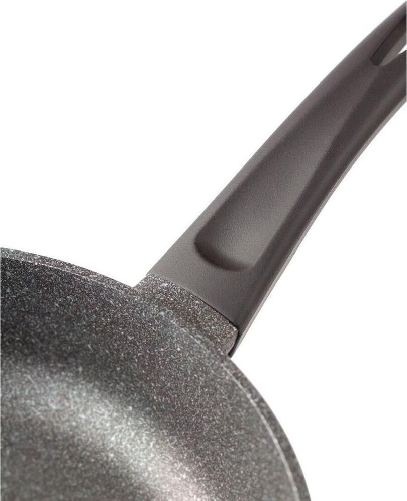 Сковороды имеют прочное, надёжное антипригарное покрытие Greblon non-stick C2+ от Weilburger Coatings GmbH (Германия). Покрытие экологически безопасно, т.к. не содержит PFOA (перфтороктановую кислоту). Высокий бортик в 5см позволит не только жарить, но и тушить. За счёт такой высоты, по сути вы можете использовать сковороды также как и сотейники. Подходит для всех плит, кроме индукции. Можно мыть в посудомоечной машине.