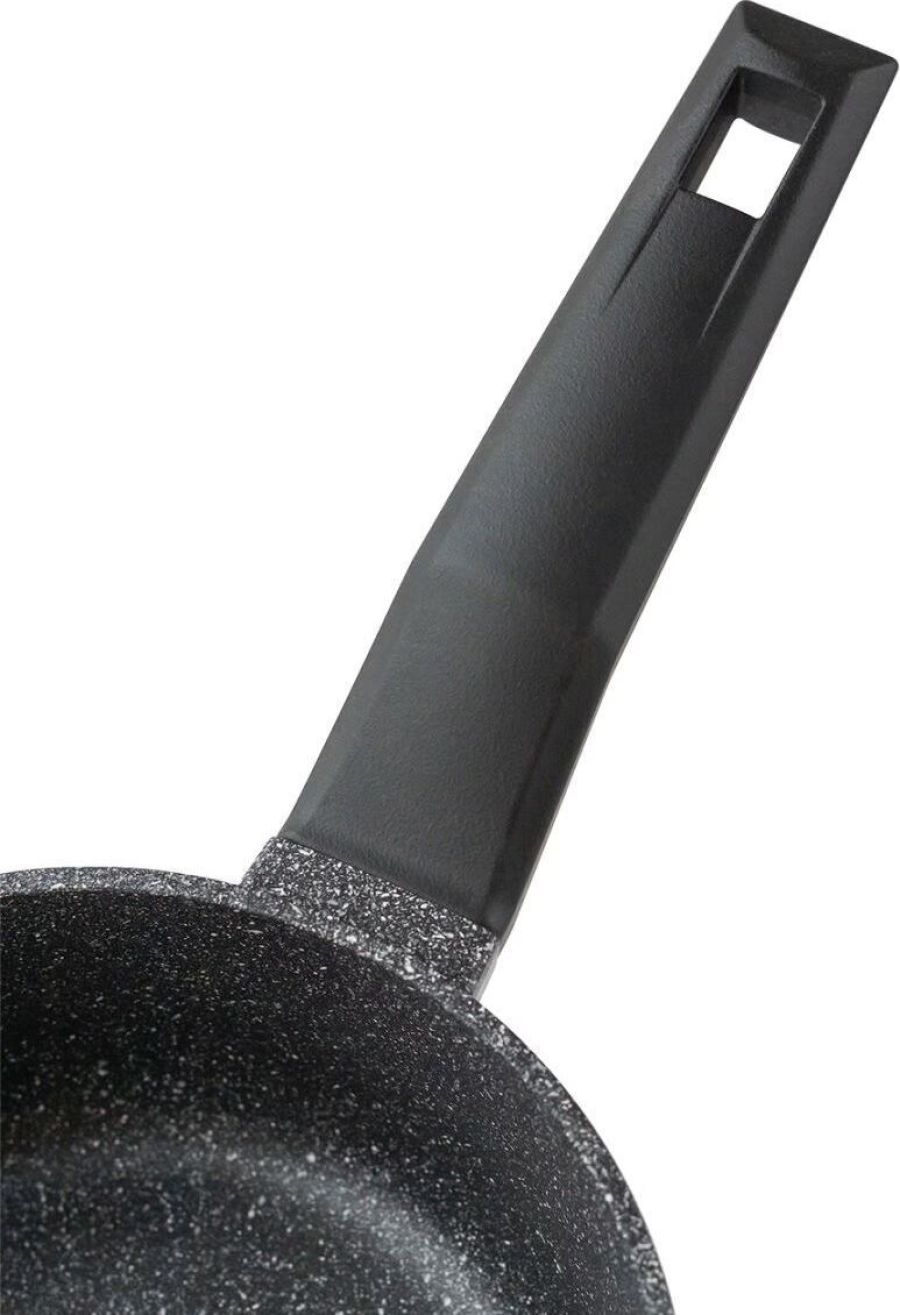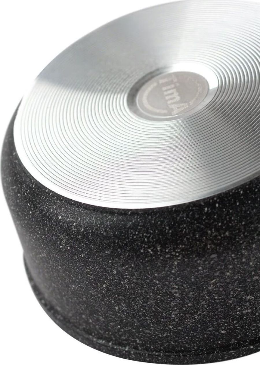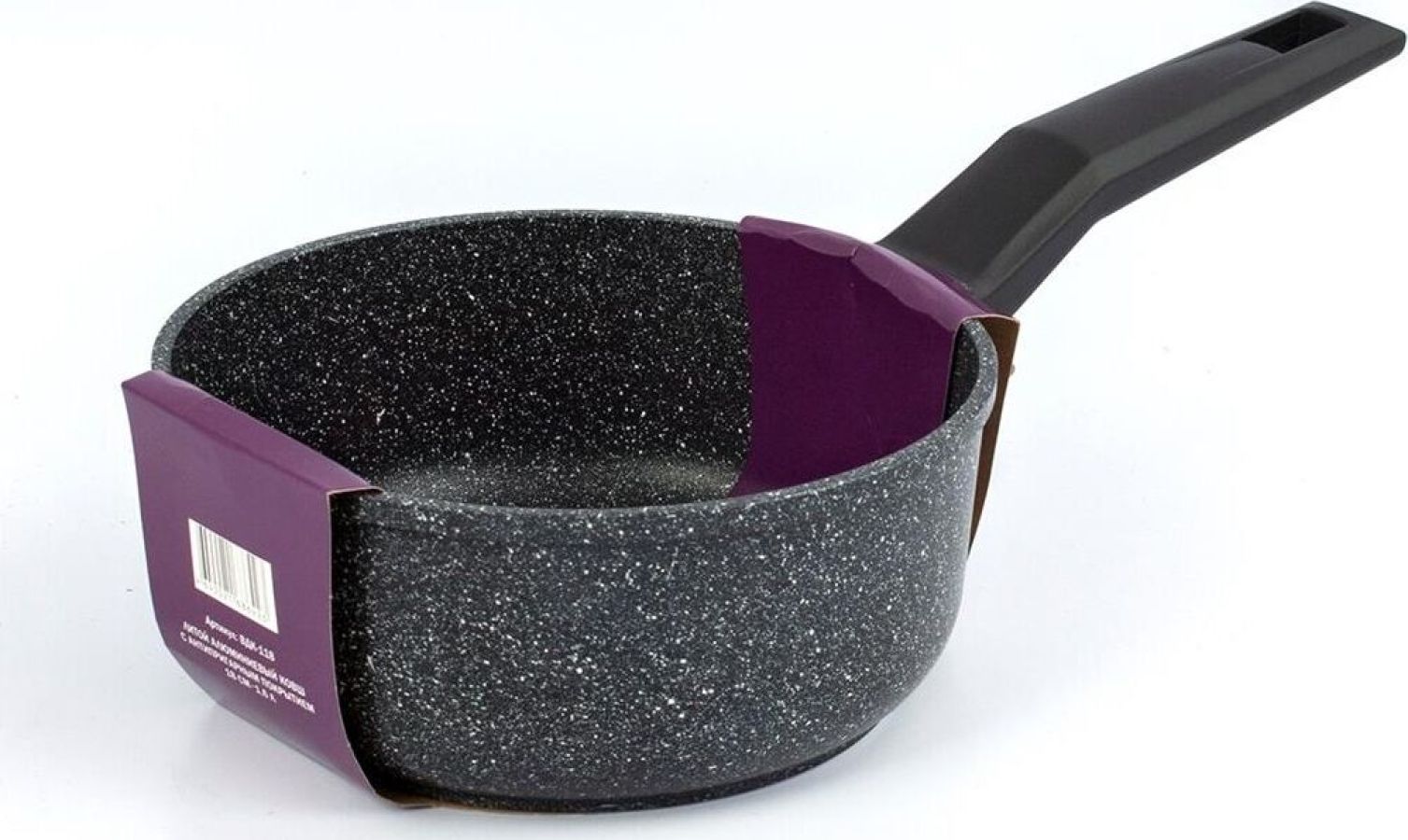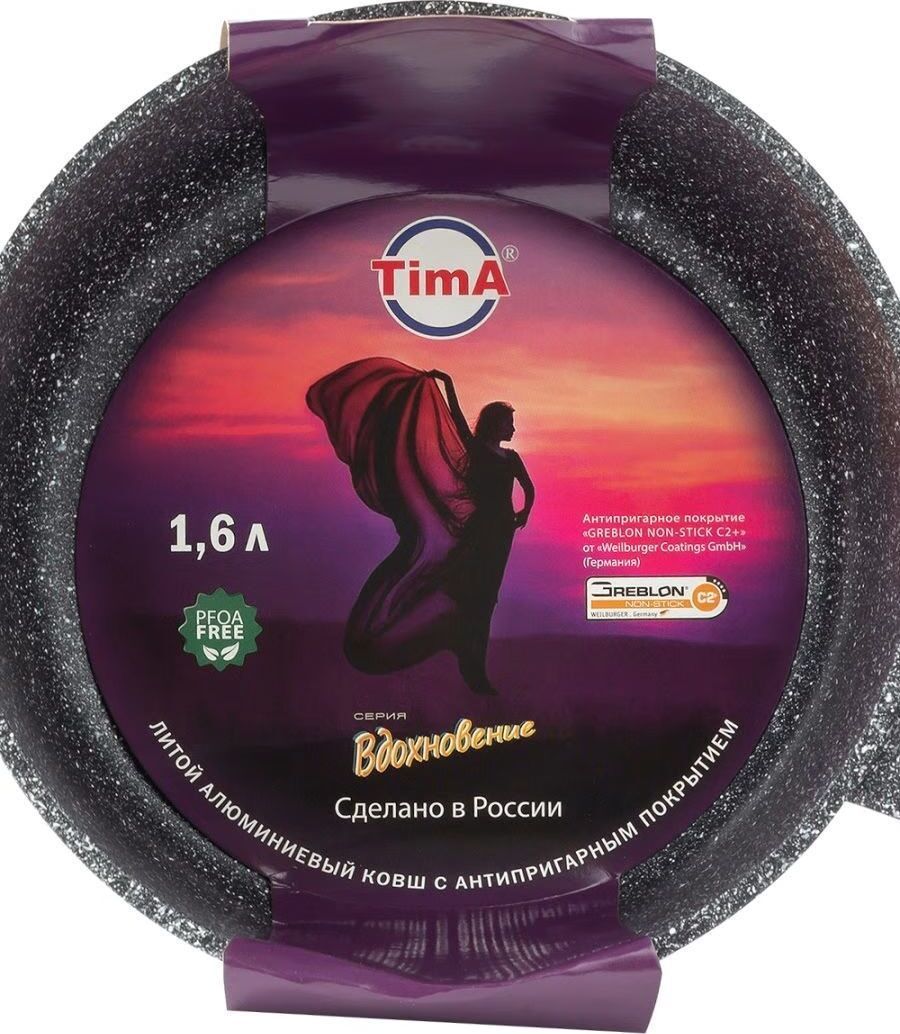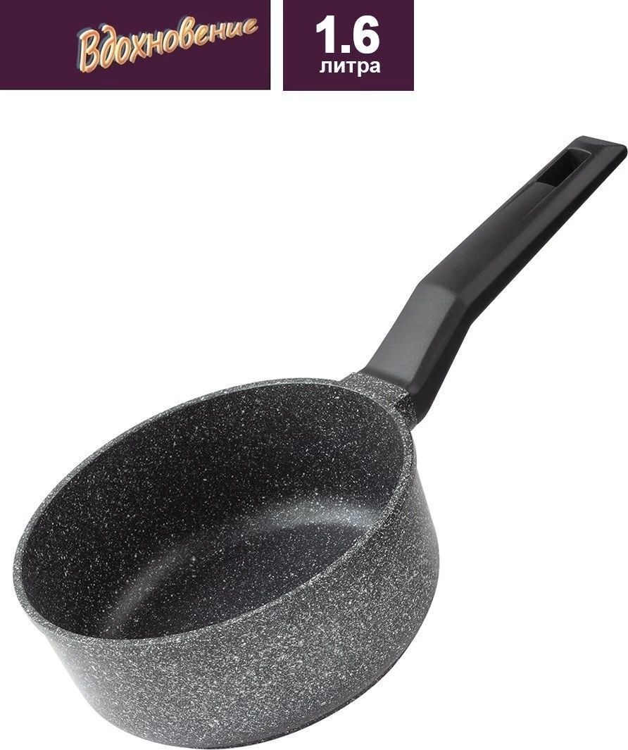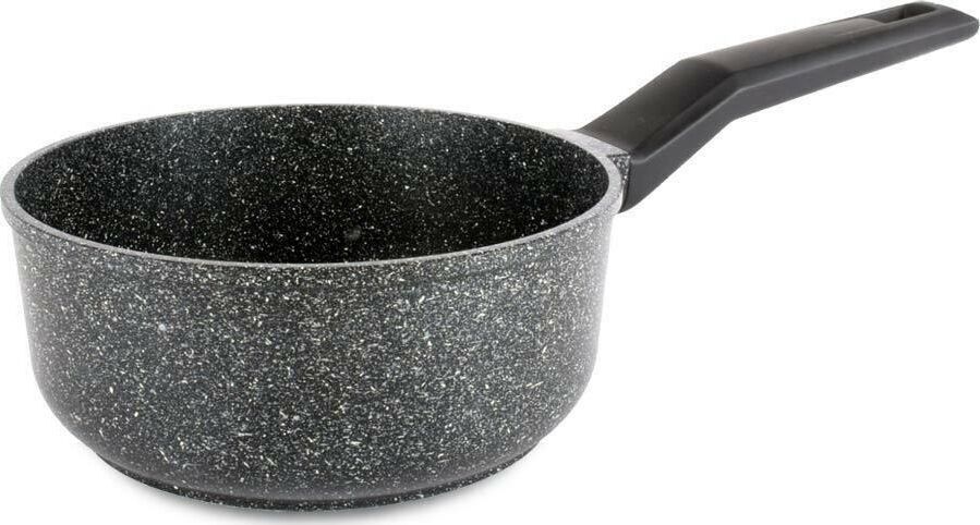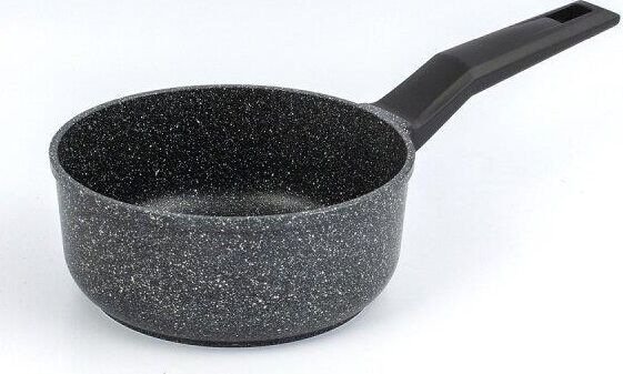 Ковш изготовлен из пищевого алюминия с кристаллизацией под давлением и покрыты усиленным двухслойным антипригарным покрытием «Greblon Non Stick C2+» (Германия) толщиной около 30 мкм. Это покрытие выдерживает не менее 3,5 тысячи условных циклов приготовления пищи, что позволяет изделию прослужить несколько лет. Фиксированная эргономичная ручка с покрытием Soft-touch, не нагреваются. Ковш изготовлен в современном дизайне, имитирующем камень, оригинально и стильно смотрятся в интерьере любой кухни.