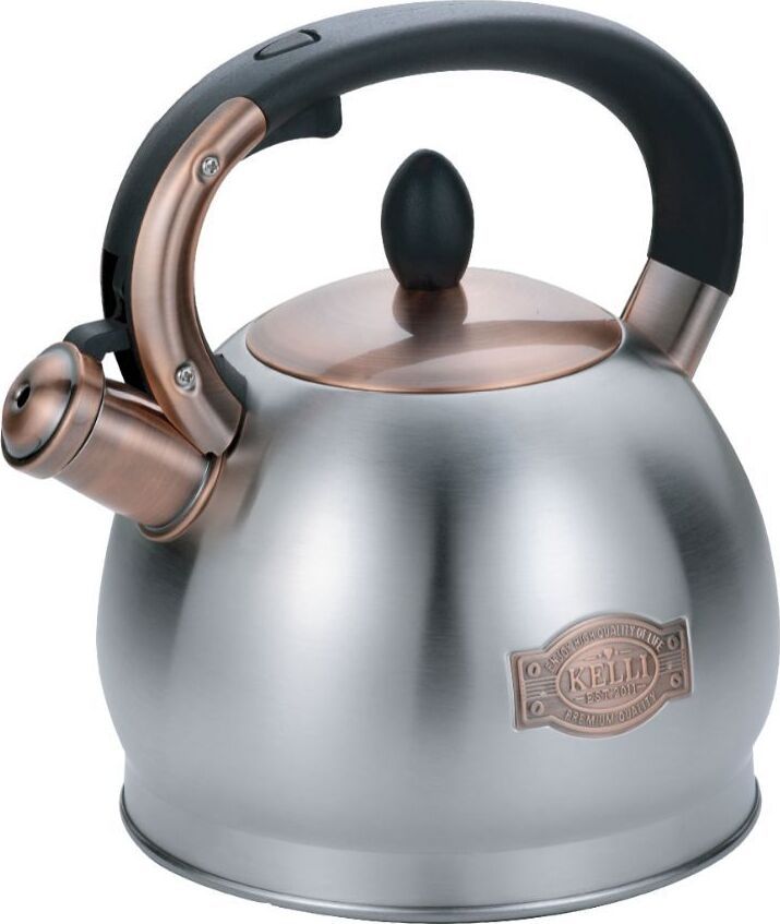 Металлический чайник со свистком. Объем: 3л. Высококачественная нержавеющая сталь. Многослойное капсульное дно. Эргономичная ручка не нагревается. Свистит при нагревании. Пригоден для всех видов плит.