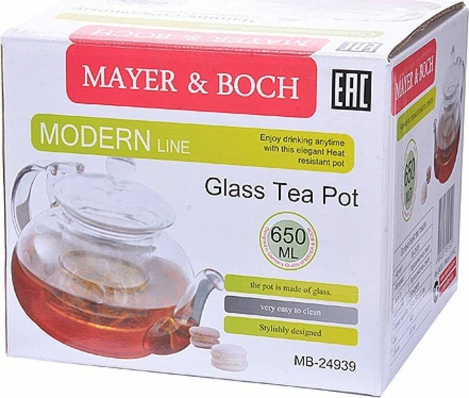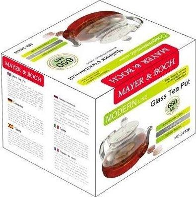 Чайник заварочный МВ(х16). Материал: термостойкое стекло. Объем: 650 мл. Вес: 425 г. Размер упаковки: 15,4 х 15,4 х 13 см. Упаковка: коробка. Страна производитель: Китай.