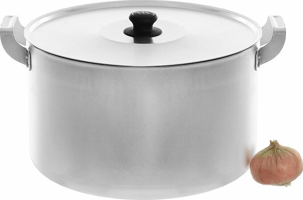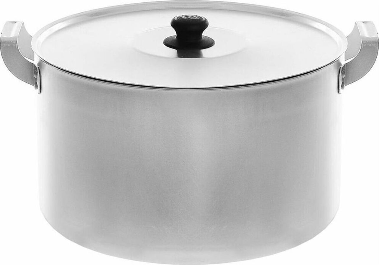 Кастрюля с металлической крышкой и двумя металлическими ручками на 15 литров изготовлена из чистого пищевого алюминия методом штамповки. Основные характеристики такой посуды: легкость, прочность, быстрый нагрев, безопасность и доступность. Кастрюля подходит к использованию на электрической, керамической, газовой плите, легко моется и имеет неограниченный срок службы.