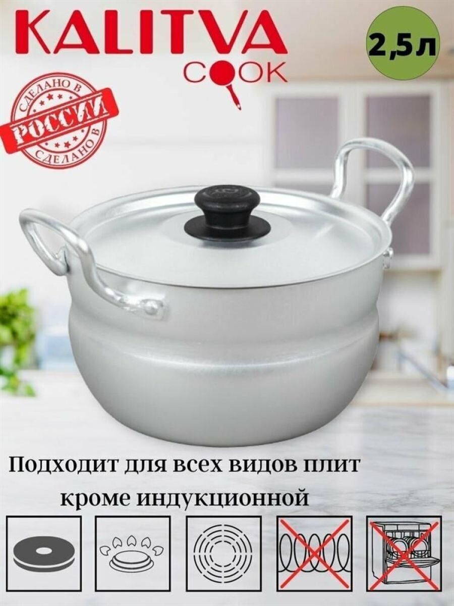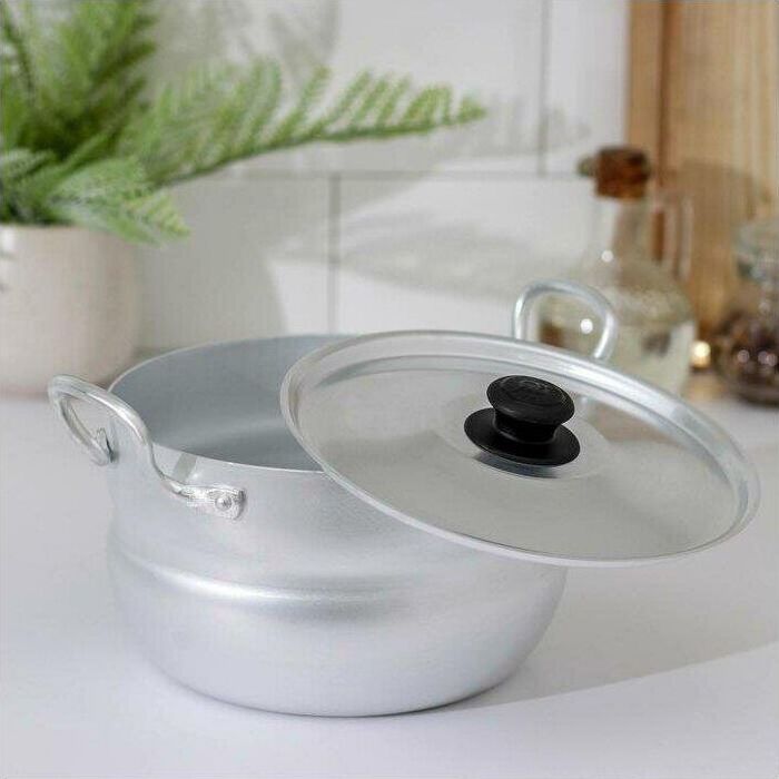Диаметр, см18 Высота, см 10,5 Толщина, мм 1,5 Литраж, л 2,5 Категория Матовая посуда Внешнее покрытие и Внутреннее покрытие - алюминий без покрытия (матовый алюминий) Кастрюля с металлической крышкой и двумя металлическими ручками на 2,5 литра изготовлена из чистого пищевого алюминия методом штамповки. Основные характеристики такой посуды: легкость, прочность, быстрый нагрев, безопасность и доступность.