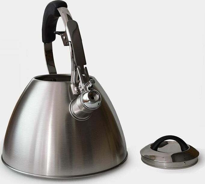 Металлический чайник со свистком Объем: 3л Высококачественная нержавеющая сталь Матовая полировка Теплоемкое капсульное дно Силиконовая ручка не нагревается Свистит при закипании Современный дизайн Подходит для всех видов плит