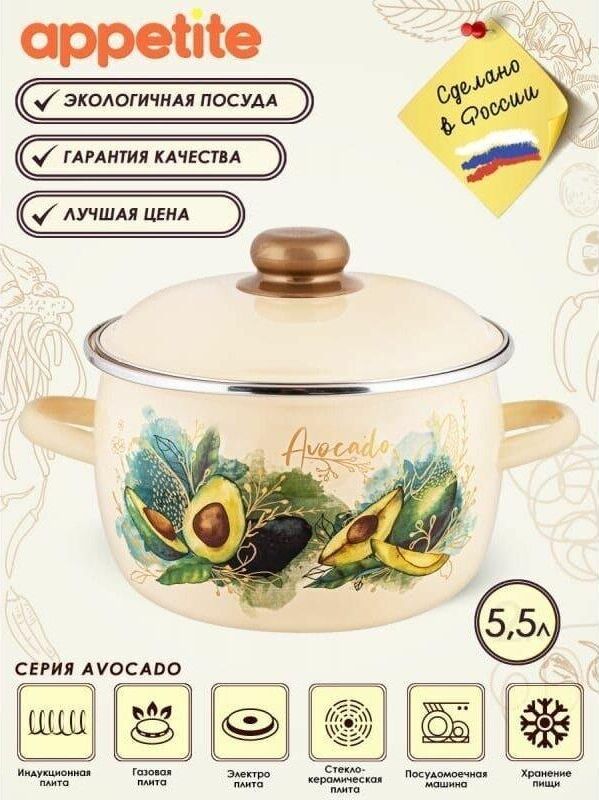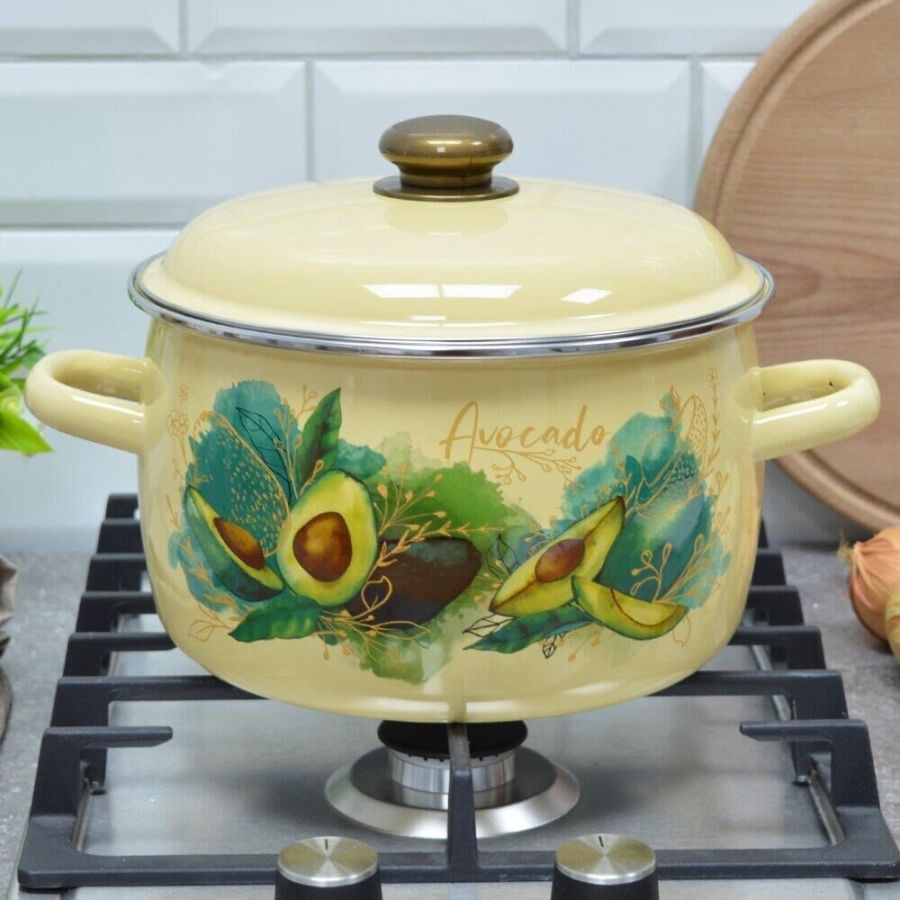 Кастрюля эмалированная 5,50л сферическая, толщина дна: 0,8мм толщина стенок: 0,8мм. Тип упаковки: коллективная Крышка: эмалированная Внутреннее покрытие: эмаль Внешнее покрытие: эмаль Подходит для всех типов плит, включая индукционные. Можно мыть в посудомоечной машине.