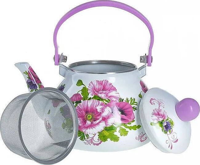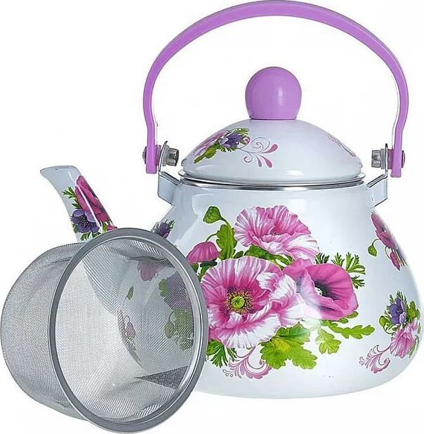 EM-131X1/14 Чайник эмалированный с фильтром из нерж.стали "Нежные маки" 1,3л (8) Трехслойное внутреннее и внешнее эмалевое покрытие, устойчивое к воздействию пищевых кислот. Съемный фильтр из нержавеющей стали. Зачерненное дно с повышенной термоотдачей. Эргономичная подвижная пластиковая ручка. Может быть использован на всех типах кухонных плит: электрических, газовых, керамических, индукционных. Подходит для мытья в посудомоечной машине. Упаковка: цветная коробка.