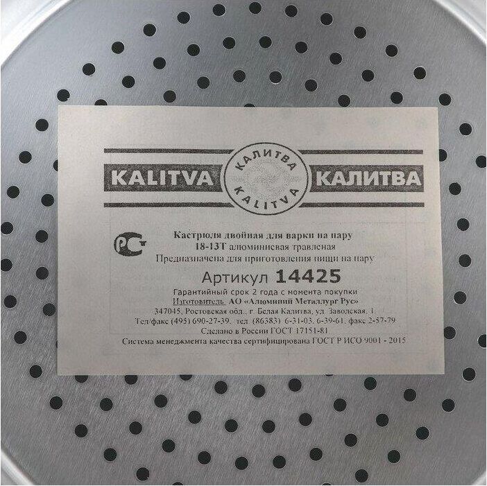 Диаметр, см 18 Высота, см 16,5 Толщина, мм 1,2 - 1,5 Литраж, л 2,5 КатегорияМатовая посуда Пароварка со съемной сеткой предназначена для приготовления пищи на пару и незаменима для людей, которым требуются особые условия приготовления пищи.