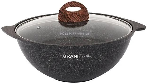 Объем, л./размер, см: 4,5л. Материал: литой алюминий Коллекция/серия: Granit ultra original. Торговая марка: Kukmara. Толщина дна: до 6мм. Толщина стенок: до 4.5мм. Источник тепла: Все виды плит, кроме индукционной. Крышка: стеклянная. Тип упаковки: цветная коробка. Внутреннее покрытие: Антипригарное мраморное покрытие нового поколения, усиленное сверхтвердыми частицами минералов. Внешнее покрытие: Декоративное износостойкое покрытие с отличной сопротивляемостью к высоким температурам. Можно мыть в посудомоечной машине.