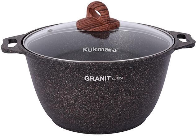 Объем, л./размер, см: 4,0л. Материал: литой алюминий Коллекция/серия: Granit ultra original. Торговая марка: Kukmara. Толщина дна: до 6мм. Толщина стенок: до 4.5мм. Источник тепла: Все виды плит, кроме индукционной. Крышка: стеклянная. Тип упаковки: цветная коробка. Внутреннее покрытие: Антипригарное мраморное покрытие нового поколения, усиленное сверхтвердыми частицами минералов. Внешнее покрытие: Декоративное износостойкое покрытие с отличной сопротивляемостью к высоким температурам. Можно мыть в посудомоечной машине.