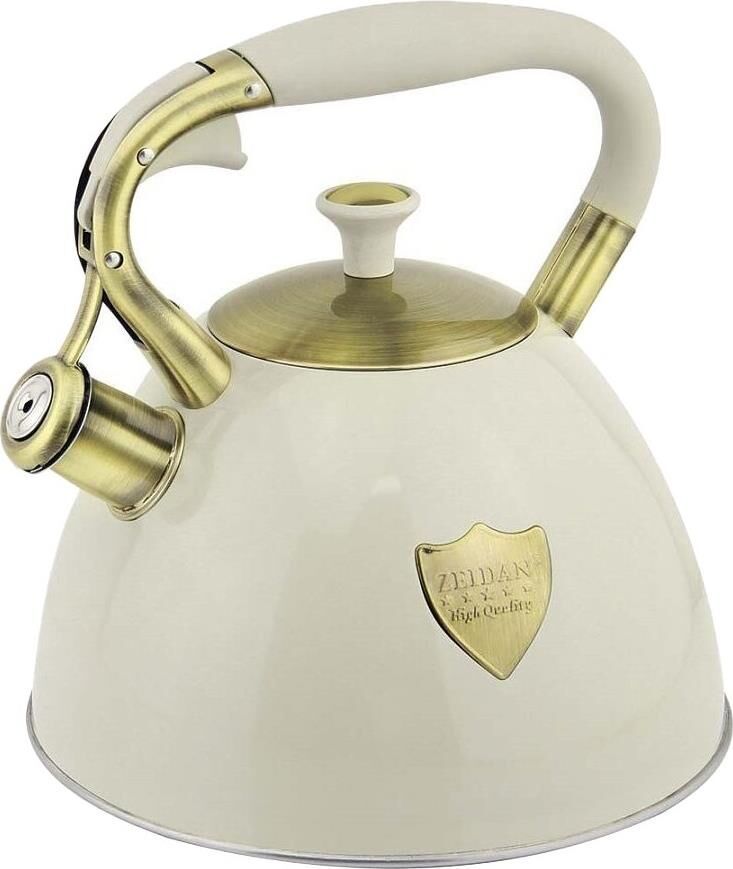 Чайник со свистком, 3,0 л, нержавеющая сталь, капсулированное индукционное дно, курковый механизм, внешнее покрытие - антипригарное цветное покрытие, устойчивое к высоким температурам, комбинированная ручка с покрытием "soft-touch", ДЕКОРАТИВНЫЕ ЭЛЕМЕНТЫ "ПОД БРОНЗУ". Подарочная упаковка.