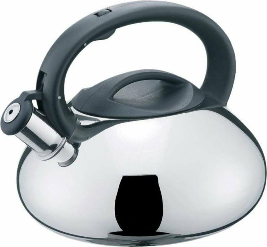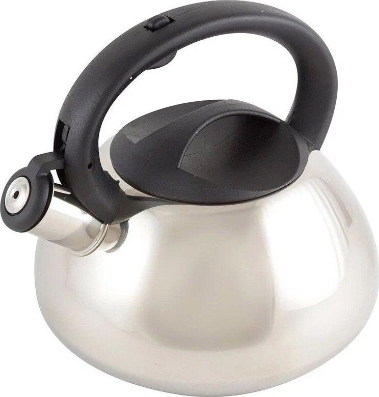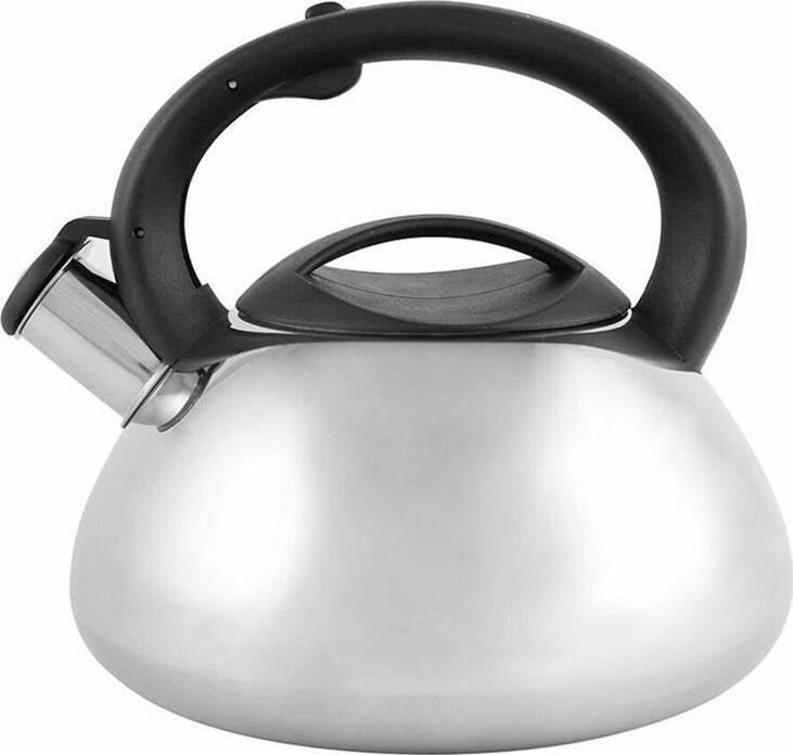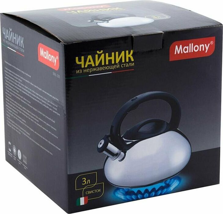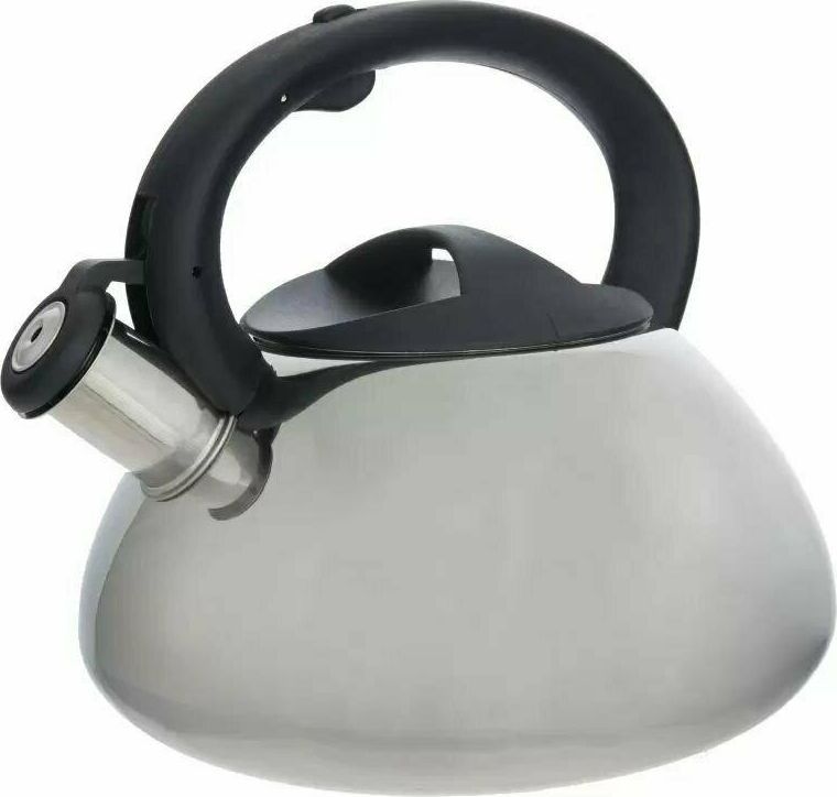Чайник из нержавеющей стали 201 со свистком Объем: 3 литра Материал: нержавеющая сталь, нейлон, металл толщина - 0,5 мм Цельнометаллический, полированный Со свистком Подходит для всех типов плит. Не рекомендуется мыть в посудомоечной машине. Упаковка: инд цветная коробка.