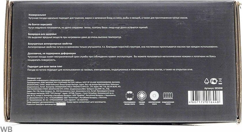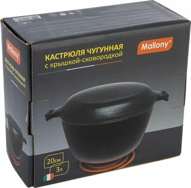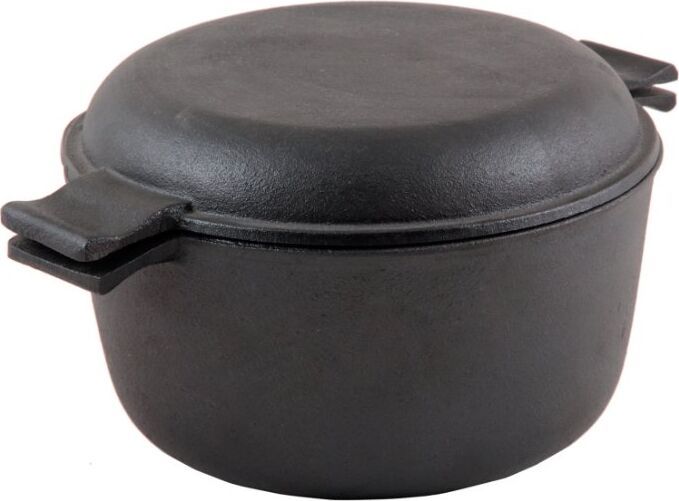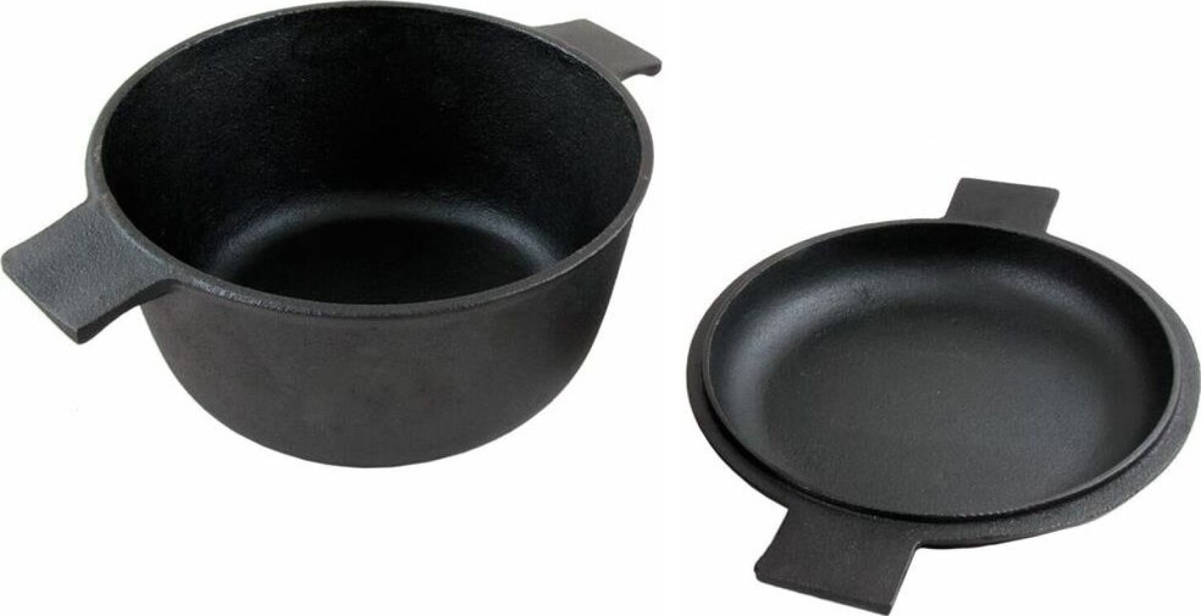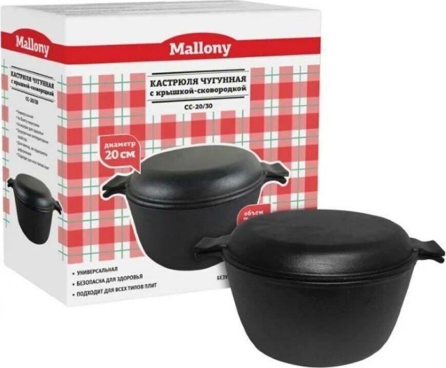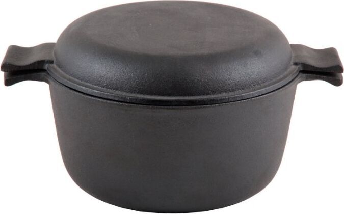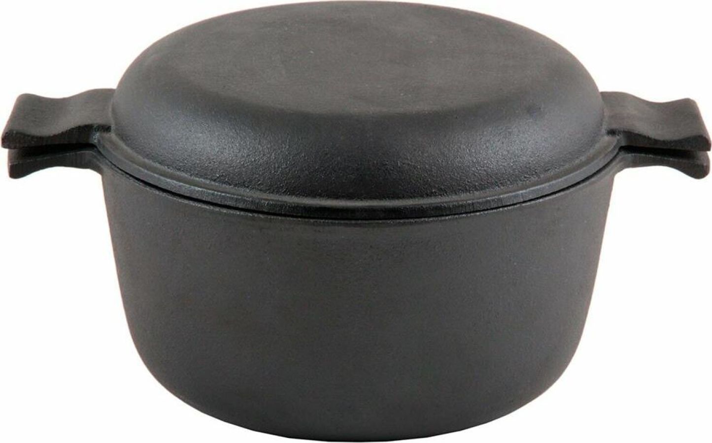 Кастрюля чугунная с термопокрытием, с крышкой-сковородой диаметр 20 см Объем 3 л Вес 4,5 кг Высота борта: 10 см Толщина: 5,9 мм Подходит для всех типов плит. Материал: чугун. Упаковка: инд цветная коробка. Безопасна для здоровья. Безупречные антипригарные свойства. Нельзя мыть в посудомоечной машине. Правила по уходу указаны на упаковке товара.
