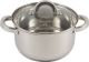 Кастрюля из нерж стали с крышкой, объем 3,6 л, размер: 20*11,5 см, серия "Mediano", тм MALLONY Кастрюля из нерж стали с крышкой, 3,6 л 20*11,5 см размер, литраж 3,6 л, 201 нержавеющая сталь,толщина - 0,35 мм, дно 3-слойное капсулированное - нерж сталь 201 +1 мм алюминия + 430 сталь (толщина дна - 1,7 мм), подходит для индукции, снаружи и внутри - зеркальная полировка, полые ручки из нерж стали, С-тип крышка из жаропрочного стекла с отверстием для выпуска пара. Отметки литража.Упаковка - цветной картонный вкладыш, термоусадка (крышка в перевернутом виде внурь кастрюли). Не рекомендуется мыть в посудомоечной машине. Метод производства - штампованная. Тип крепления ручек - заклепочное. Подходит для всех типов плит.