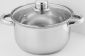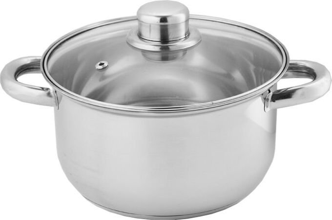 Объем 2,6 л. Диаметр 18 см. Глубина 10.5 см. Толщина стали 0,3 мм. Кастрюля из высококачественной нержавеющей стали. Специальная форма, исключающая скопление остатков пищи и жира. Обод, препятствующий переливанию жидкостей через край. Термосберегающее дно с повышенной термоотдачей. Стеклянная крышка с отверстием для отвода пара позволяет поддерживать оптимальный процесс нагрева. Металлические ручки. Быстрый нагрев пищи, длительное удержание тепла.