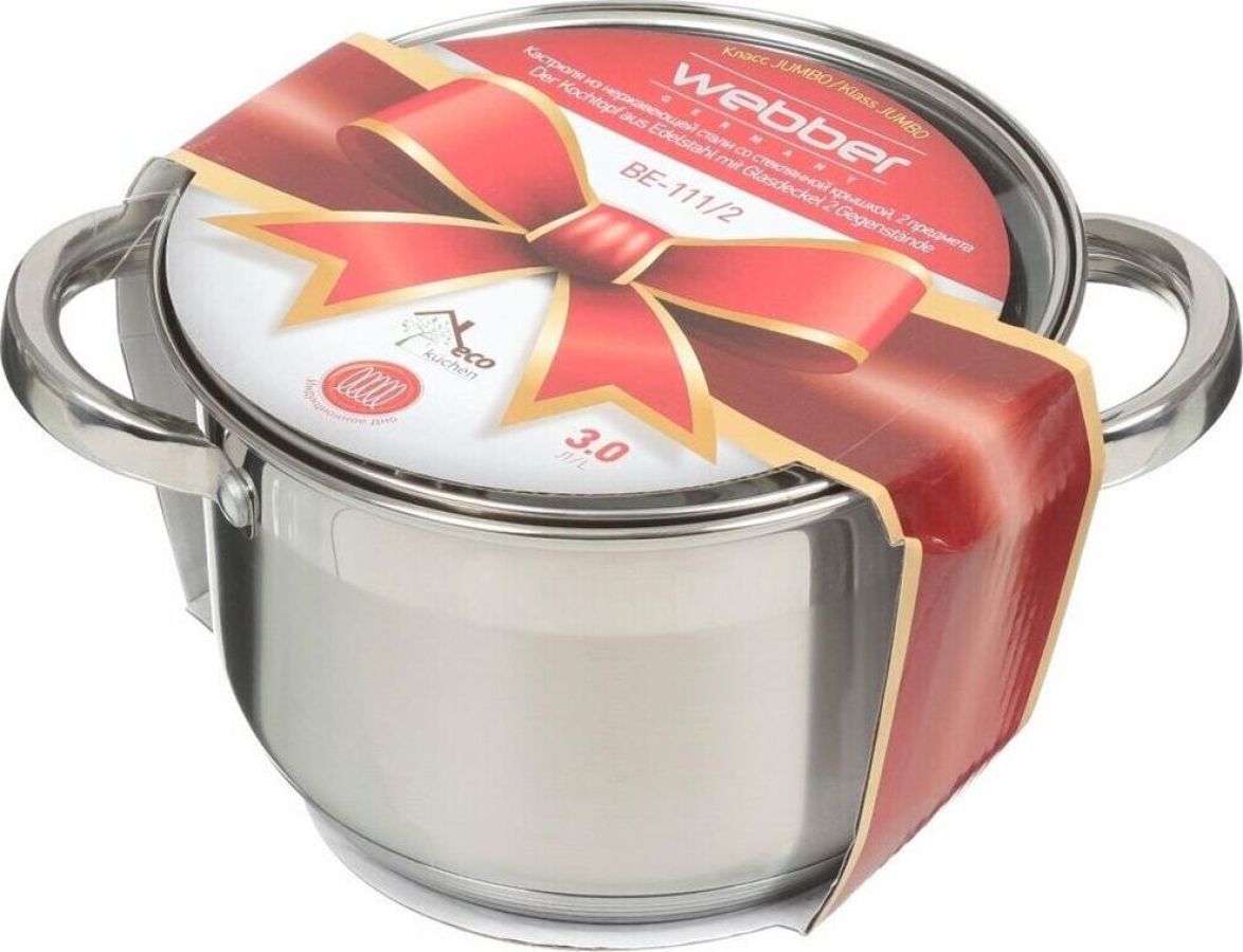 BE-111/2 Объем 3 л Диаметр 18 см Глубина 11,5 см Толщина стенок 0,5 мм Кастрюля из высококачественной нержавеющей стали класса «JUMBO» Специальная форма, исключающая скопление остатков пищи и жира Обод, препятствующий переливанию жидкостей через край Термосберегающее дно: пятислойное капсульное индукционное дно с повышенной термоотдачей Быстрый нагрев пищи, длительное удержание тепла Для приготовления пищи достаточно небольшого количества воды и масла Минимальные потери минеральных веществ, витаминов и вкусовых качеств Может быть использована на всех типах кухонных плит: электрических, газовых, керамических, индукционных Подходит для мытья в посудомоечной машине Стеклянная крышка (6)