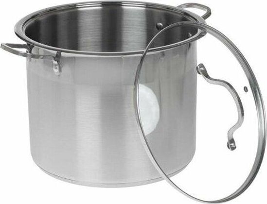 Объем: 17 л. Диаметр: 30 см. Высота: 24 см. Толщина стали: 0,6 мм. Кастрюля из высококачественной нержавеющей стали. Стеклянная крышка с отверстием для отвода пара. Термосберегающее дно: трехслойное капсулированное дно с повышенной термоотдачей. Внутренняя мерная шкала. Стальные клепаные ручки. Специальная форма, исключающая скопление остатков пищи и жира. Для приготовления пищи достаточно небольшого количества воды и масла. Минимальные потери минеральных веществ, витаминов и вкусовых качеств. Может быть использована на всех типах кухонных плит, включая индукционные. Подходит для мытья в посудомоечной машине.