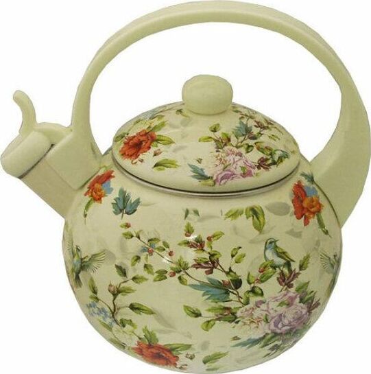 Эмалированный чайник со свистком Объем: 2,5л Носик со свистком и защитным кольцом Удобная ручка, не нагревается 3-х слойное внутреннее и внешнее эмалированое покрытие Неповсторимость дизайна Пригодность для посудомоечной машины Неповторимость узора подробнее
