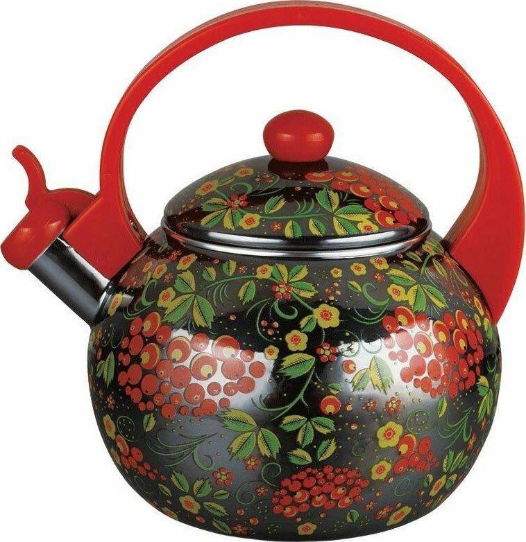Эмалированный чайник со свистком Объем: 2,5л Носик со свистком и защитным кольцом Удобная ручка, не нагревается 3-х слойное внутреннее и внешнее эмалированое покрытие Неповсторимость дизайна Пригодность для посудомоечной машины Неповторимость узора подробнее