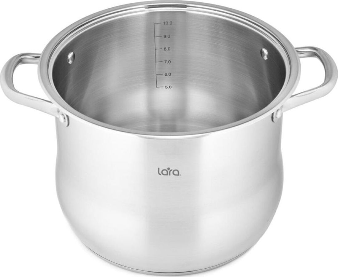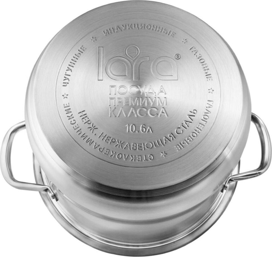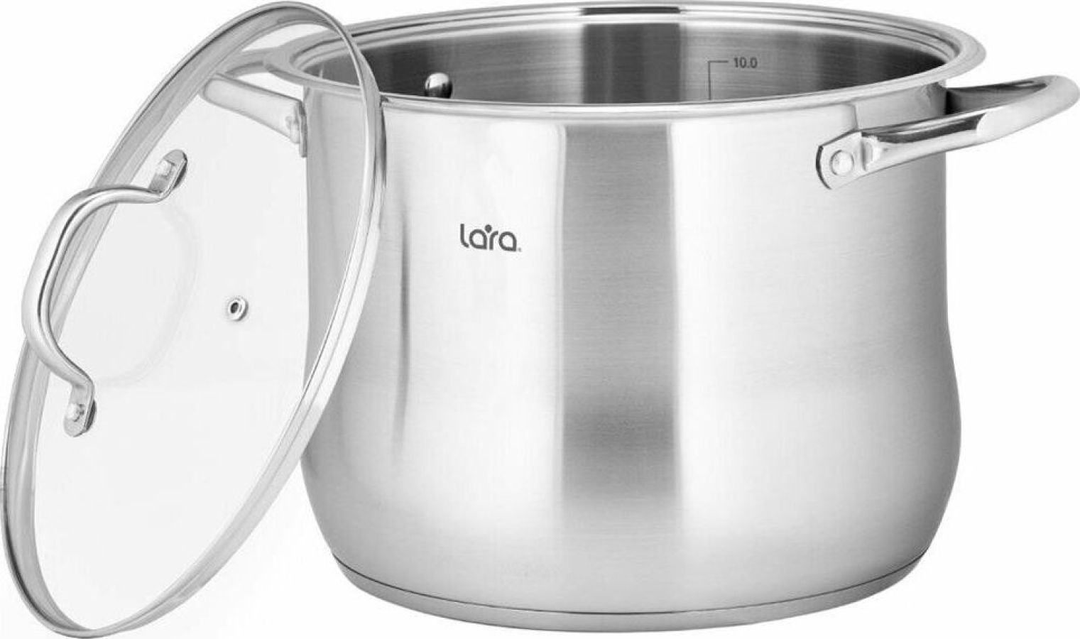 LR02-43 Кастрюля LARA (нерж) 26x21см, 11л, капсулир индукц дно, стекл кры