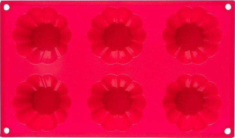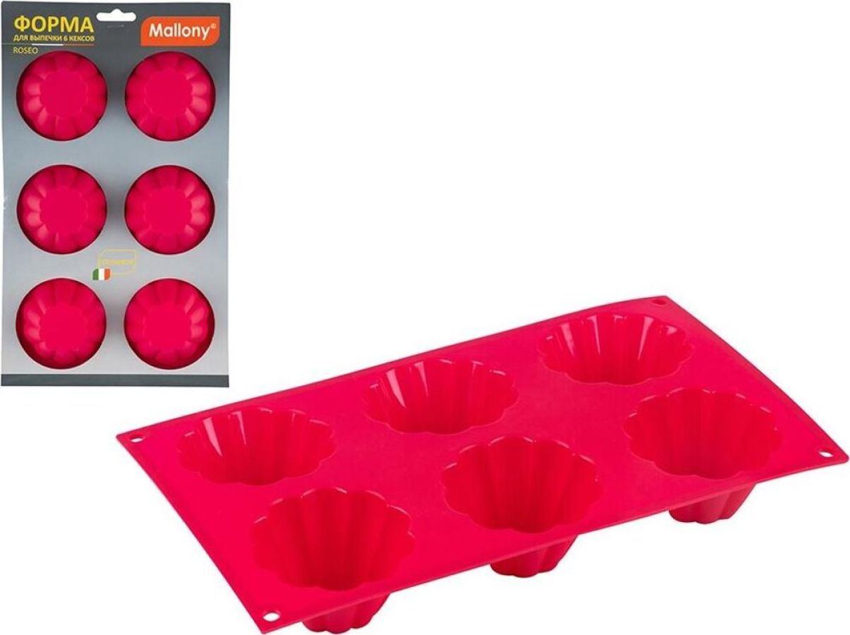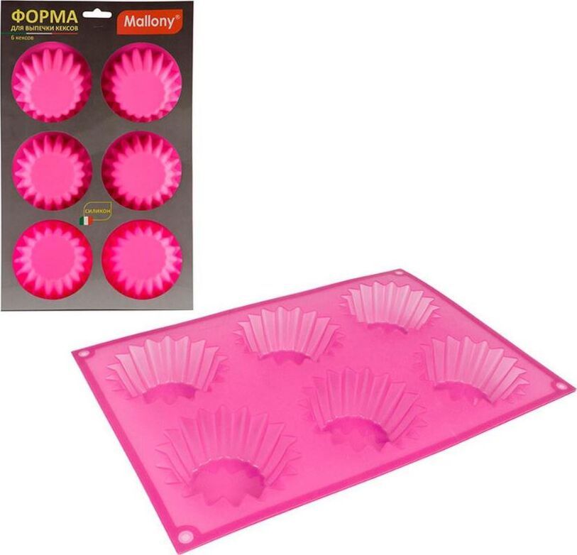 Форма для выпечки 6 кексов Размер: 31*21*4 см Материал: силикон Температура использования от -40°С до +230°С Толщина - 1 мм Упаковка: цветной рукав