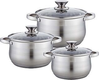Набор посуды WEBBER BE-615/6 Набор посуды из нерж.стали 6 пр. 2,9л, 5,1л, 6,6л со стеклянными крышками в интернет магазине КорБТ