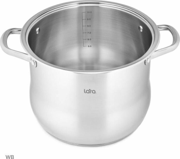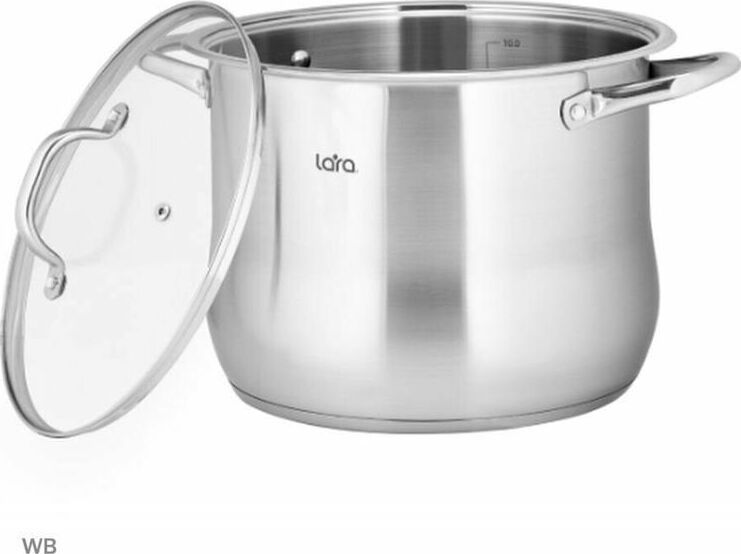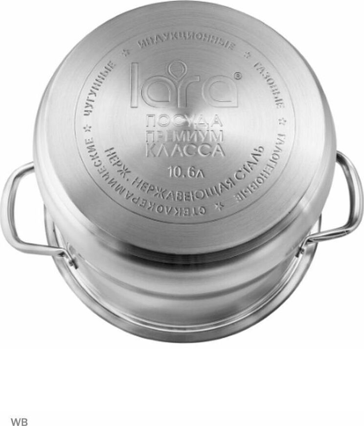 LR02-44 Кастрюля LARA (нерж) 28x23см, 13,6л, капсулир индукц дно, крышка из стали