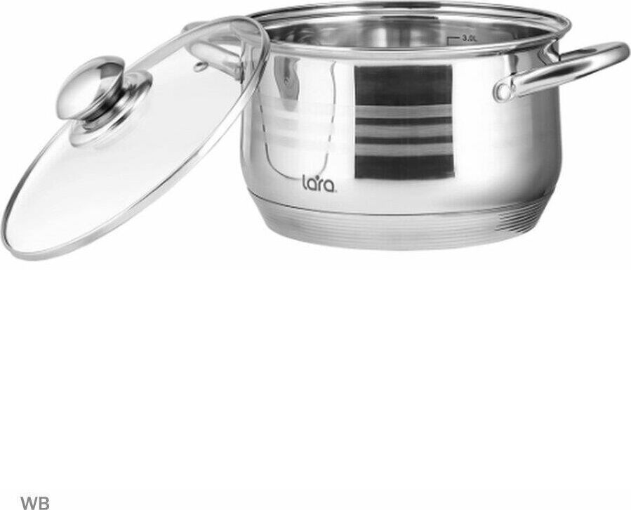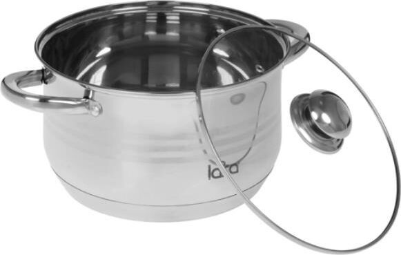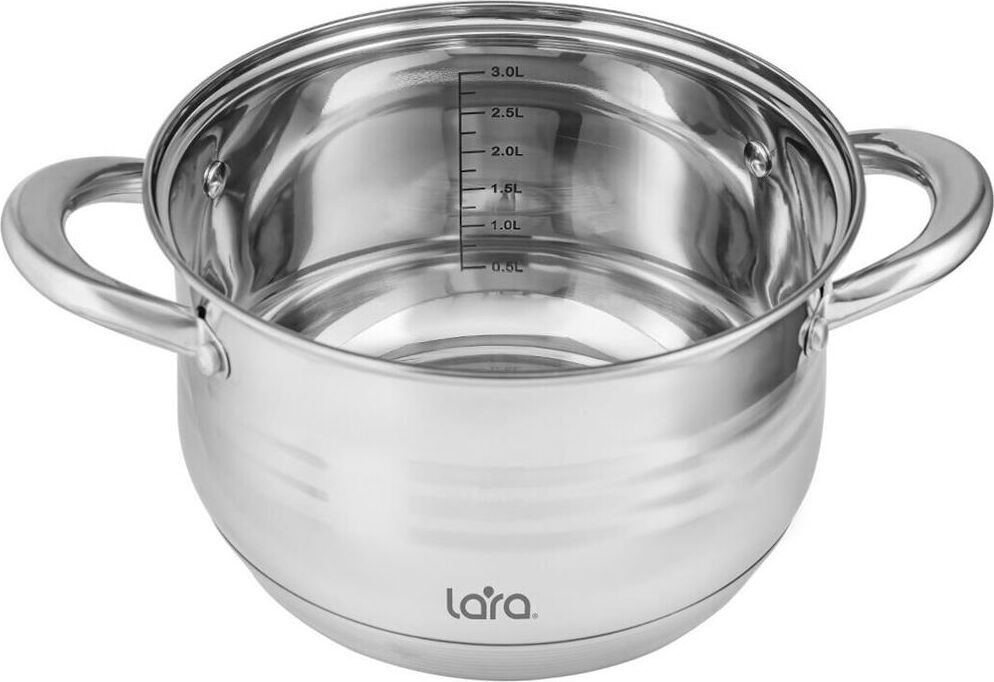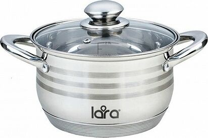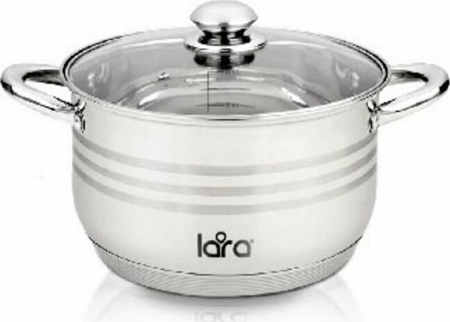 LR02-583 Кастрюля LARA (нерж) серия SONATA 24x14,5см, 6.5л, 7-СТУПЕНЧАТОЕ ДНО, комбо-полировка, крыш