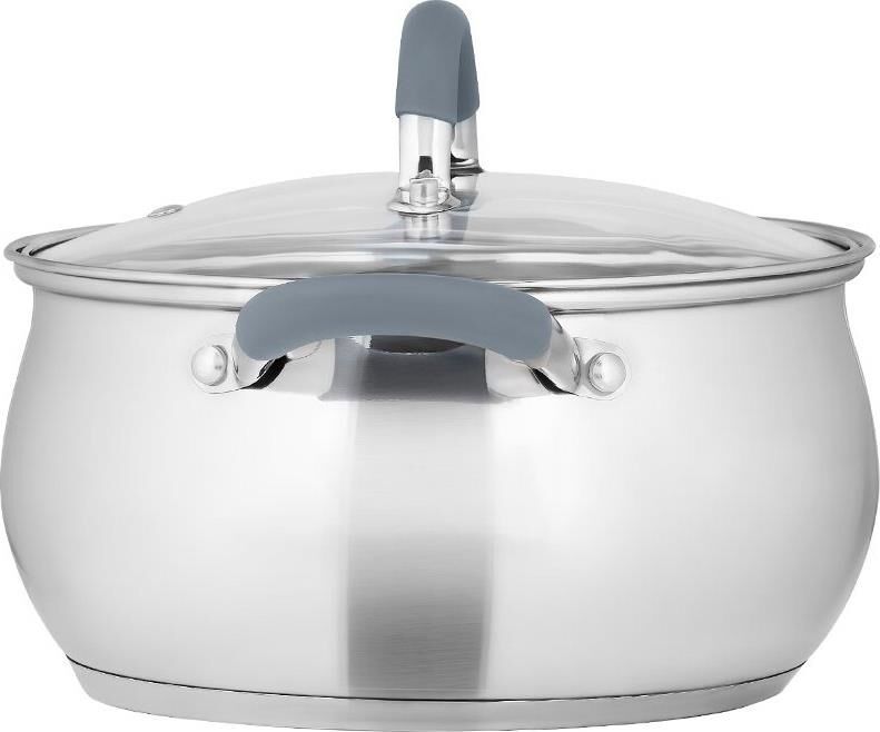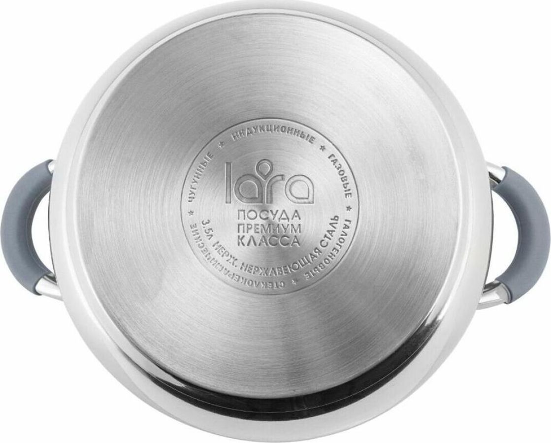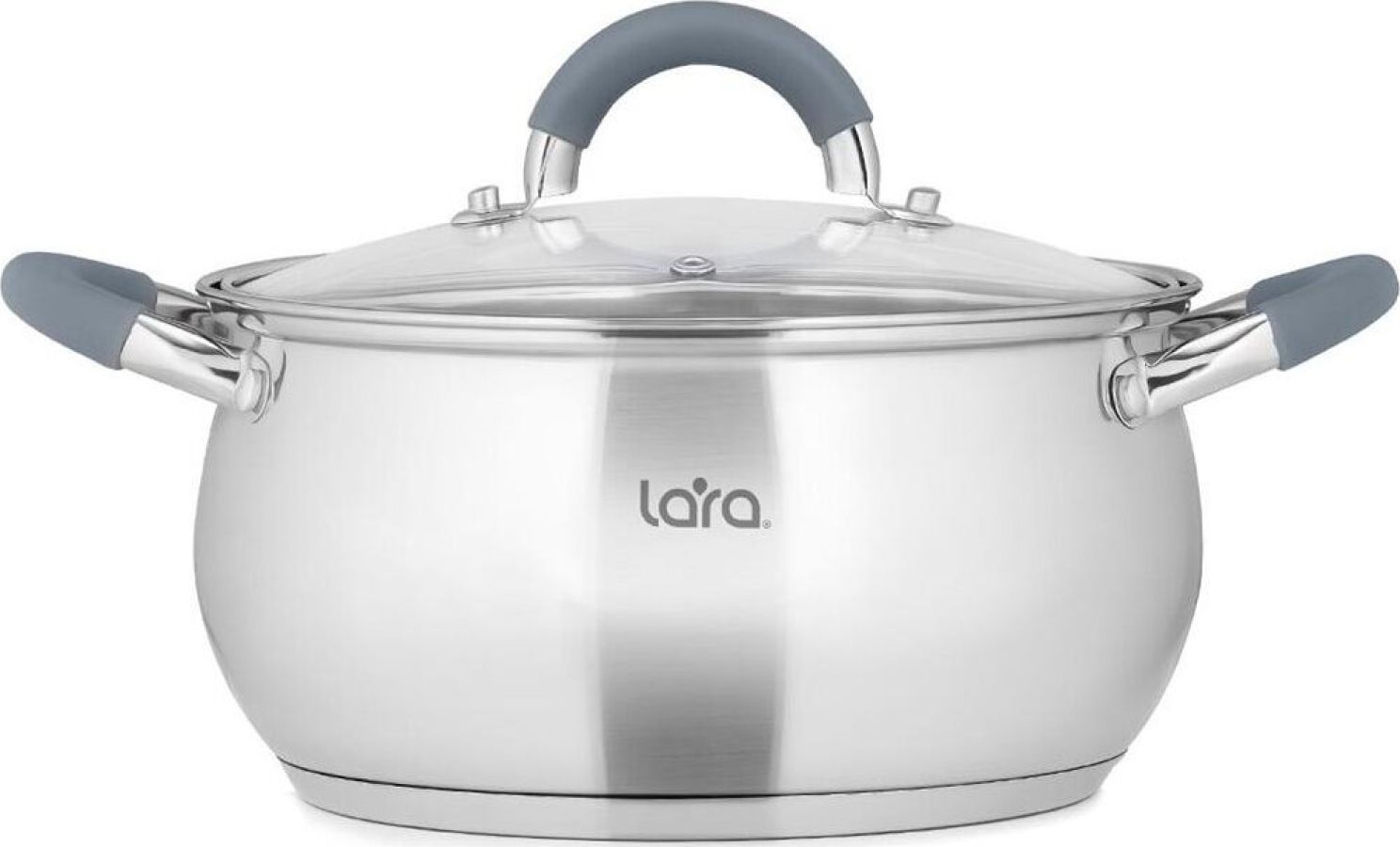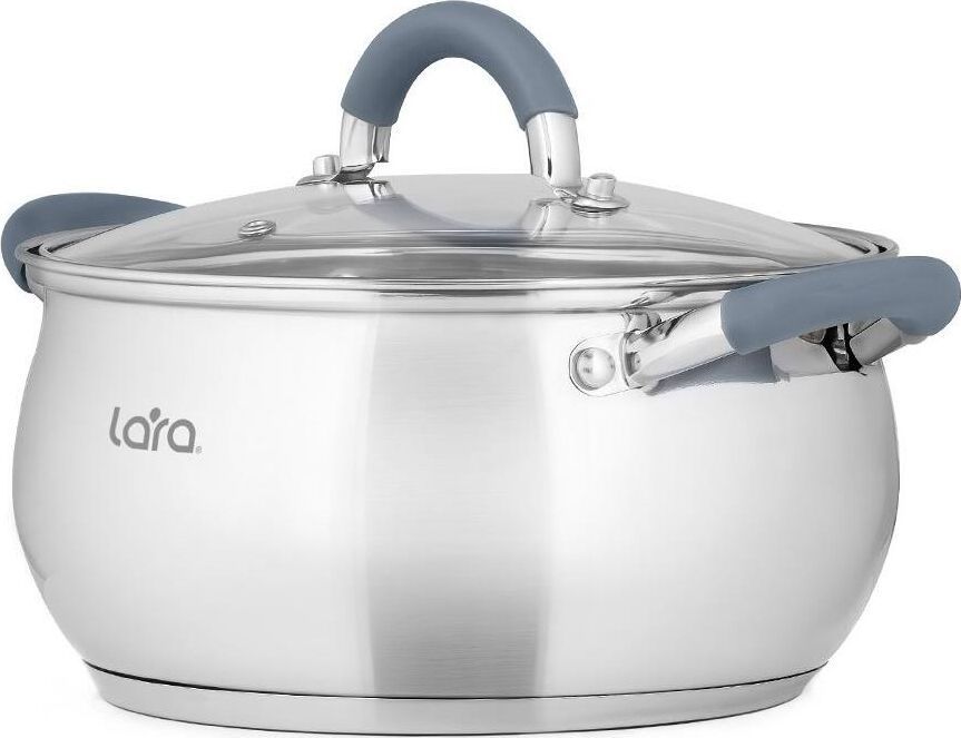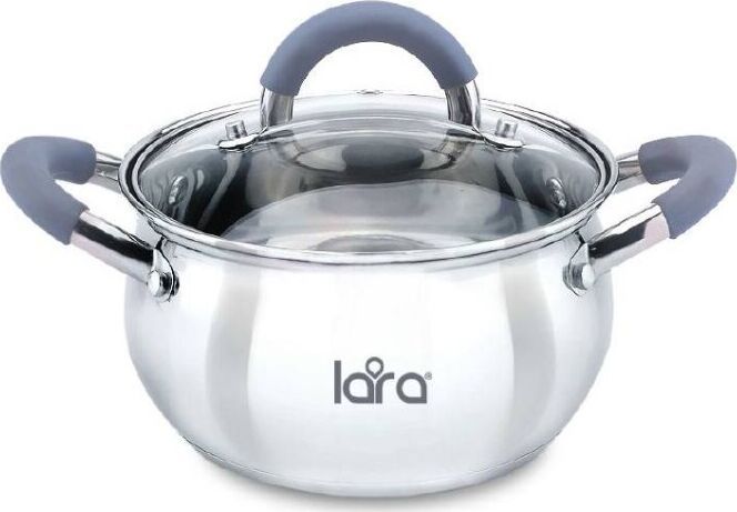 LR02-480 Кастрюля LARA (нерж) серия BELL 16x9,5см, 1.9л, капс. инд дно, силик. ручка, стекл. крышка