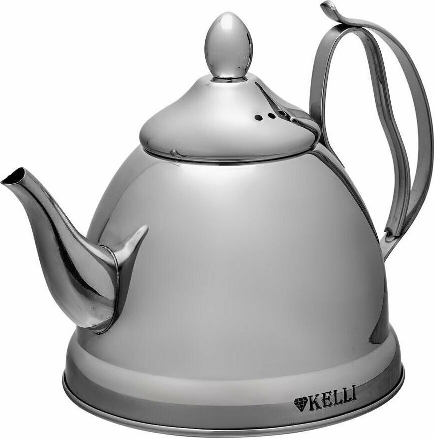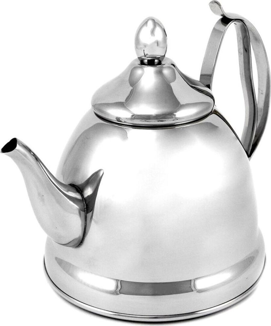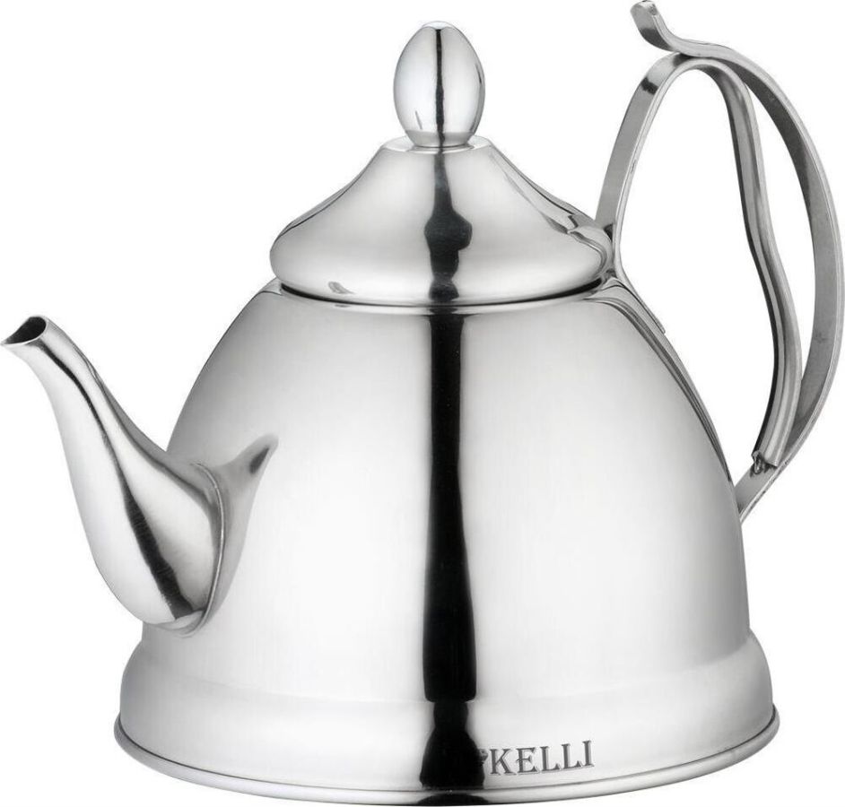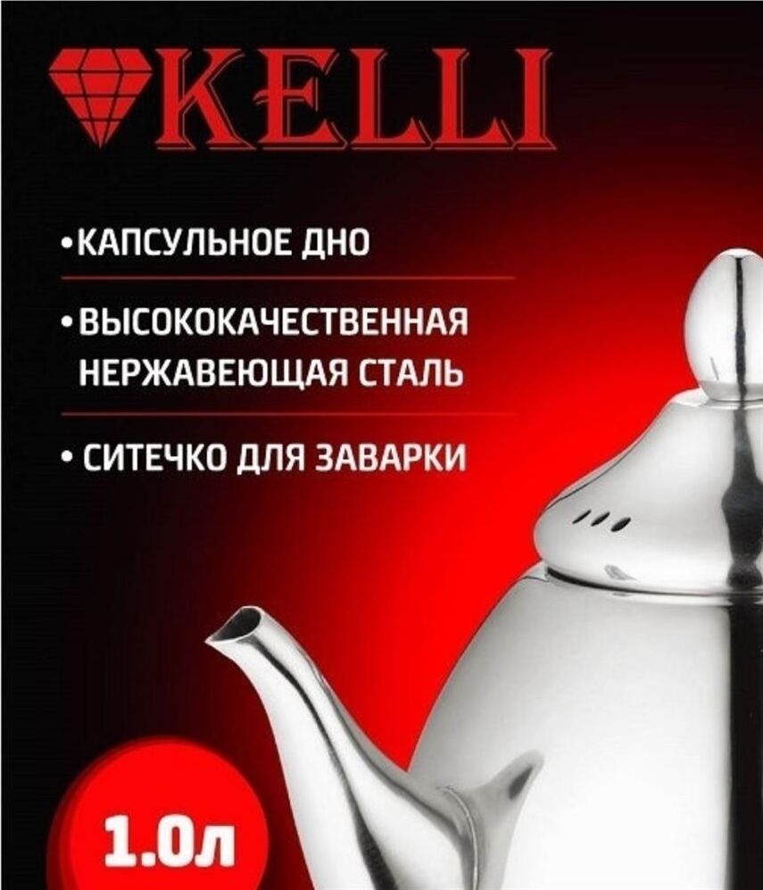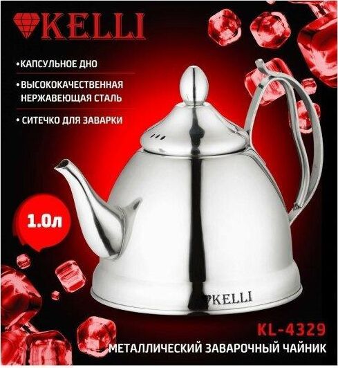 Металлический заварочный чайник 1л. Высококачественная нержавеющая сталь, теплоемкое капсульное дно, ручка не нагревается, ситечко для чая.